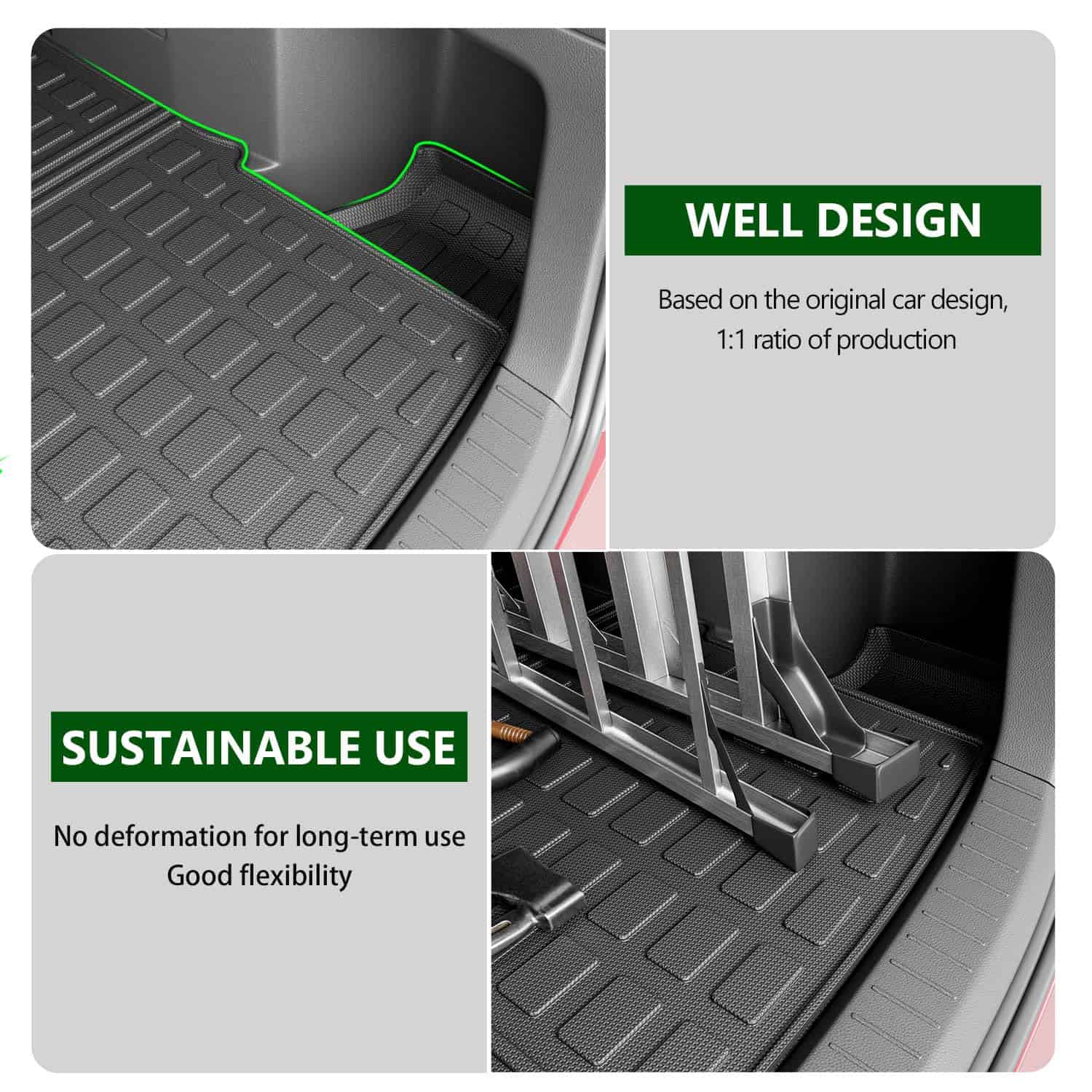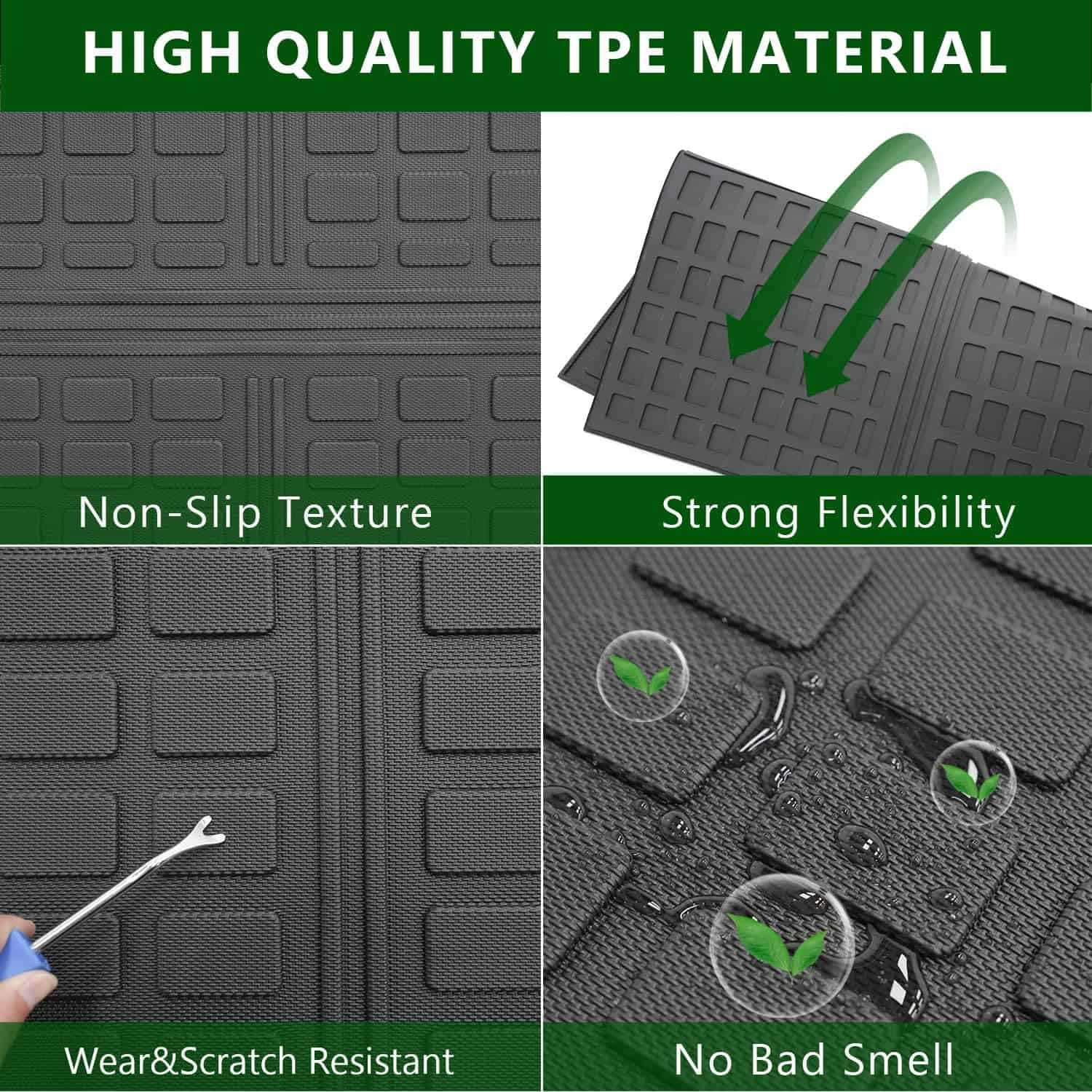 2. Material premium TPE: Nuestro tapete de carga compatible con Mazda CX-50 está hecho de TPE de calidad premium sin mal olor. Es altamente resistente al desgaste y flexible, y garantiza un rendimiento duradero en diversas condiciones ambientales. También es resistente al agua y fácil de limpiar, por lo que puedes usarlo durante mucho tiempo.