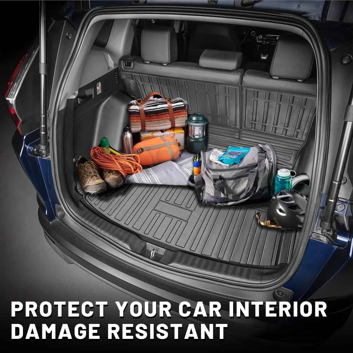 5. Fácil de limpiar: Gracias a la superficie resistente a las manchas y a la intemperie, simplemente retírelos de su vehículo y límpielos con un paño húmedo o una manguera para que sus alfombras para CRV parezcan nuevas nuevamente.