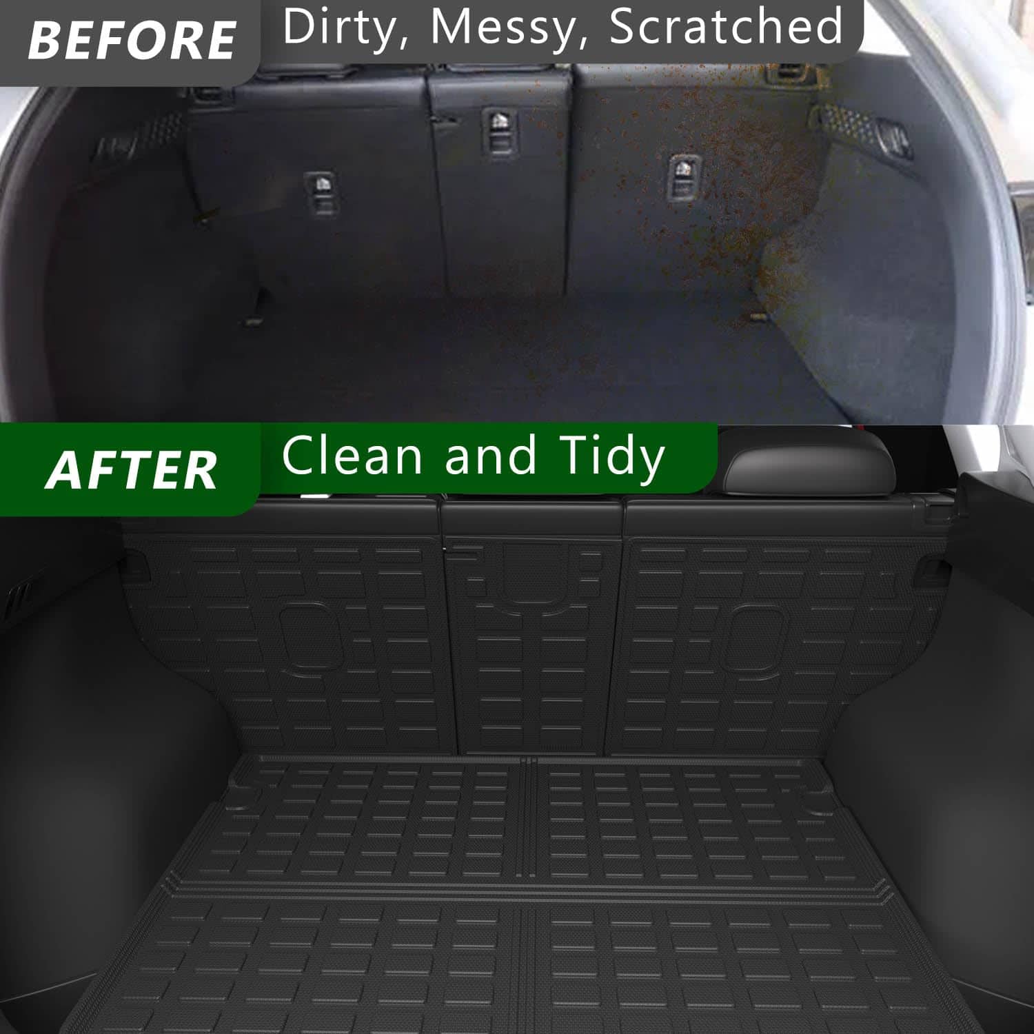 Tapete de carga y tapete de respaldo xipoqix compatible con Mazda CX-5 2023 2024 Protector de asiento trasero de TPE Reemplazo para accesorios Mazda CX-5 2023 2024 (Compatible con CX5 23-24, Tapete de carga + Tapete de respaldo) – Nuestro tapete de carga y tapete de respaldo trasero son compatibles con 2023 2024 Mazda CX-5, se ajustan precisamente a tu coche original. Por favor, verifica el modelo de tu coche antes de comprar. Los tapetes de carga y respaldo están hechos de material TPE de alta calidad, que tiene una fuerte flexibilidad y no tiene mal olor. Es altamente resistente a condiciones climáticas extremas, grietas y arañazos. Los liners antideslizantes para carga pueden mantener el equipaje en su lugar, mantener tu coche limpio y proteger tu maletero y los asientos de arañazos. Simplemente lávalos con agua y déjalos secar para eliminar suciedad, barro, cabello y otros residuos. Nuestro tapete de maletero y tapetes de respaldo son fáciles de limpiar. Solo necesitas colocar los tapetes en el lugar correcto. Puedes cortar el tapete de carga consultando el video para no afectar el uso normal de tu coche. Si tienes alguna pregunta, por favor contáctanos y te responderemos lo antes posible.