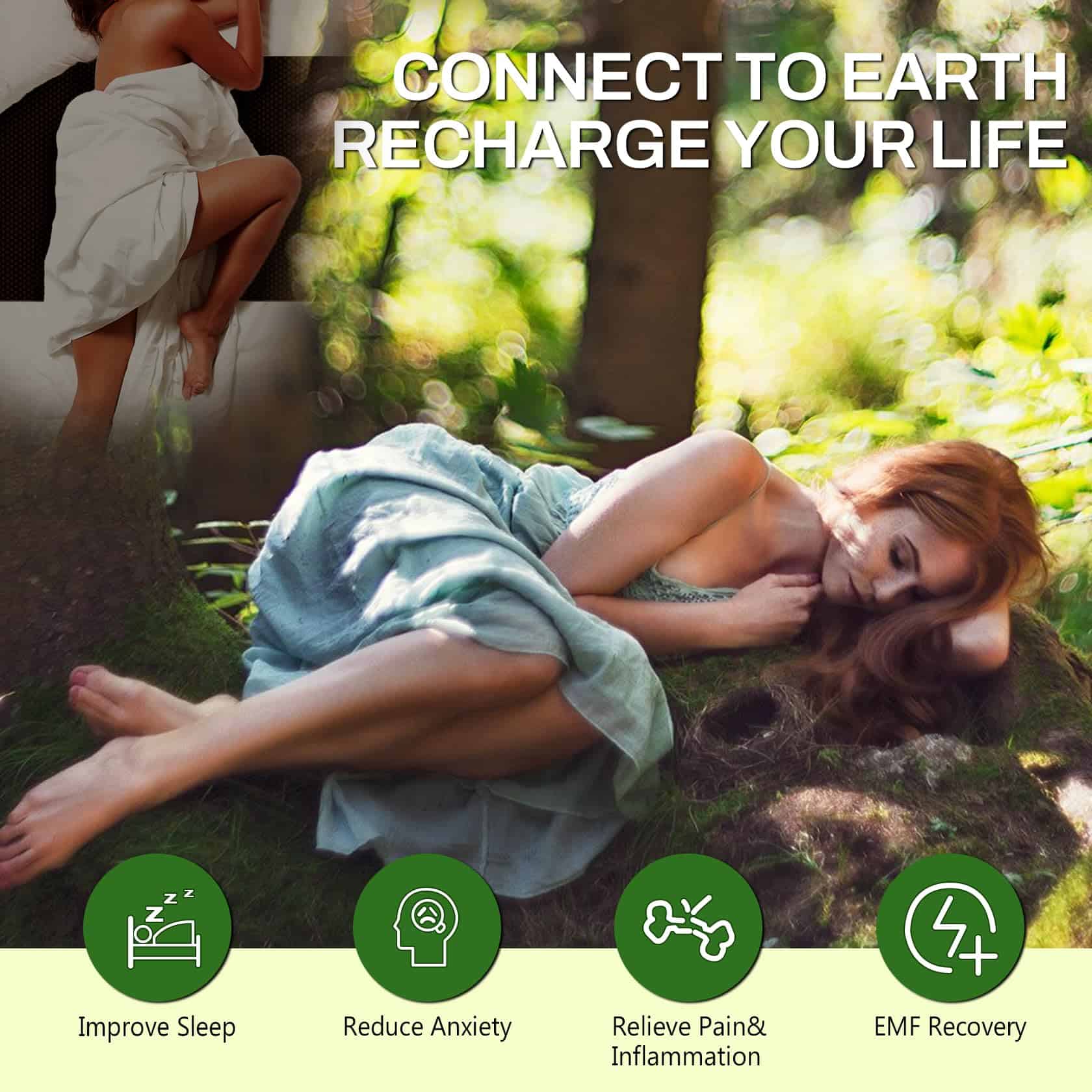 Material súper suave: El tapete de conexión a tierra está hecho de tela de algodón orgánico renovable y lavable y hilo de plata puro mezclado en la mejor proporción, y los orificios transpirables de alta calidad se sienten muy relajantes y beneficiosos para tu piel.