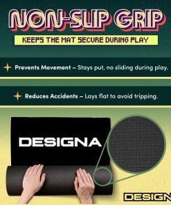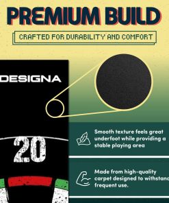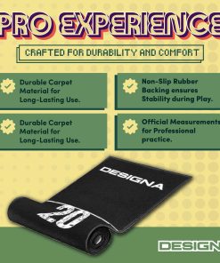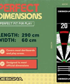 Tapete de dardos Designa con un diseño de acabado superior doble. Tapete de dardos de calidad con respaldo antideslizante de goma. Medidas oficiales de océ de especificación de torneo. Versátil, ligero, fácil de enrollar y almacenar. Especificación del tapete | Material: Carpeta | Longitud: 290cm | Ancho: 60cm.