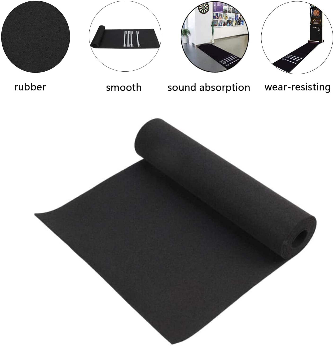 Tapete de Dardos Nisorpa de 118 x 24 pulgadas con Superficie de Goma Antideslizante es la opción ideal para los amantes de los dardos que buscan una solución de calidad para proteger su piso y mejorar su juego. Hecho de goma duradera, este tapete proporciona una superficie antideslizante que evita que las puntas de los dardos dañen su piso, ya sea en casa o en competencias profesionales. La pista profesional incluye una clara línea de tiro para prácticas precisas, con 4 líneas de tiro de medida estándar que permiten un juego regulado y mejoran las habilidades de lanzamiento de dardos. Este tapete está diseñado para ser compatible con dardos de punta suave, garantizando un juego seguro y divertido para todos los jugadores. Además, la alfombra gruesa protege su piso de arañazos y daños, manteniendo su área de juego en perfectas condiciones. Fácil de usar y almacenar, este tapete de dardos se puede enrollar y guardar en cualquier armario o estante, siendo ideal tanto para uso en interiores como en exteriores. Añada el tapete de dardos Nisorpa a su equipo de juego y lleve su experiencia de dardos al siguiente nivel.