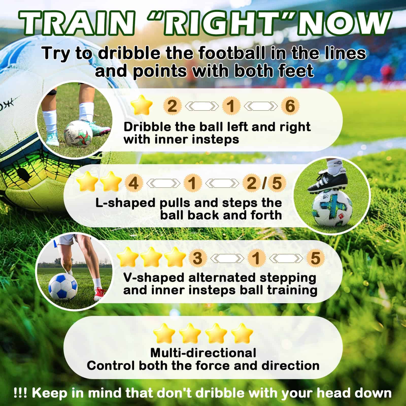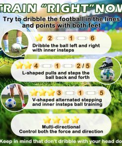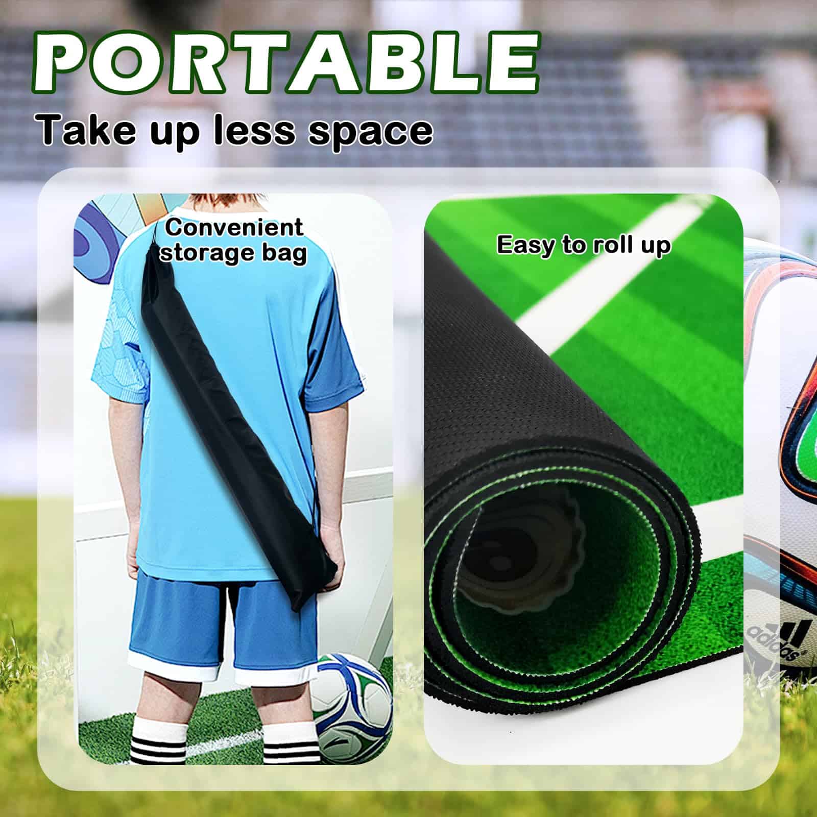 4. Comodidad Integral: Este tapete de trabajo de pies de fútbol incluye un tapete de 35″x24″ y una bolsa de transporte para un transporte fácil. Perfecto para usar en casa, en el parque o en el campo, es su equipo de entrenamiento de fútbol todo en uno.