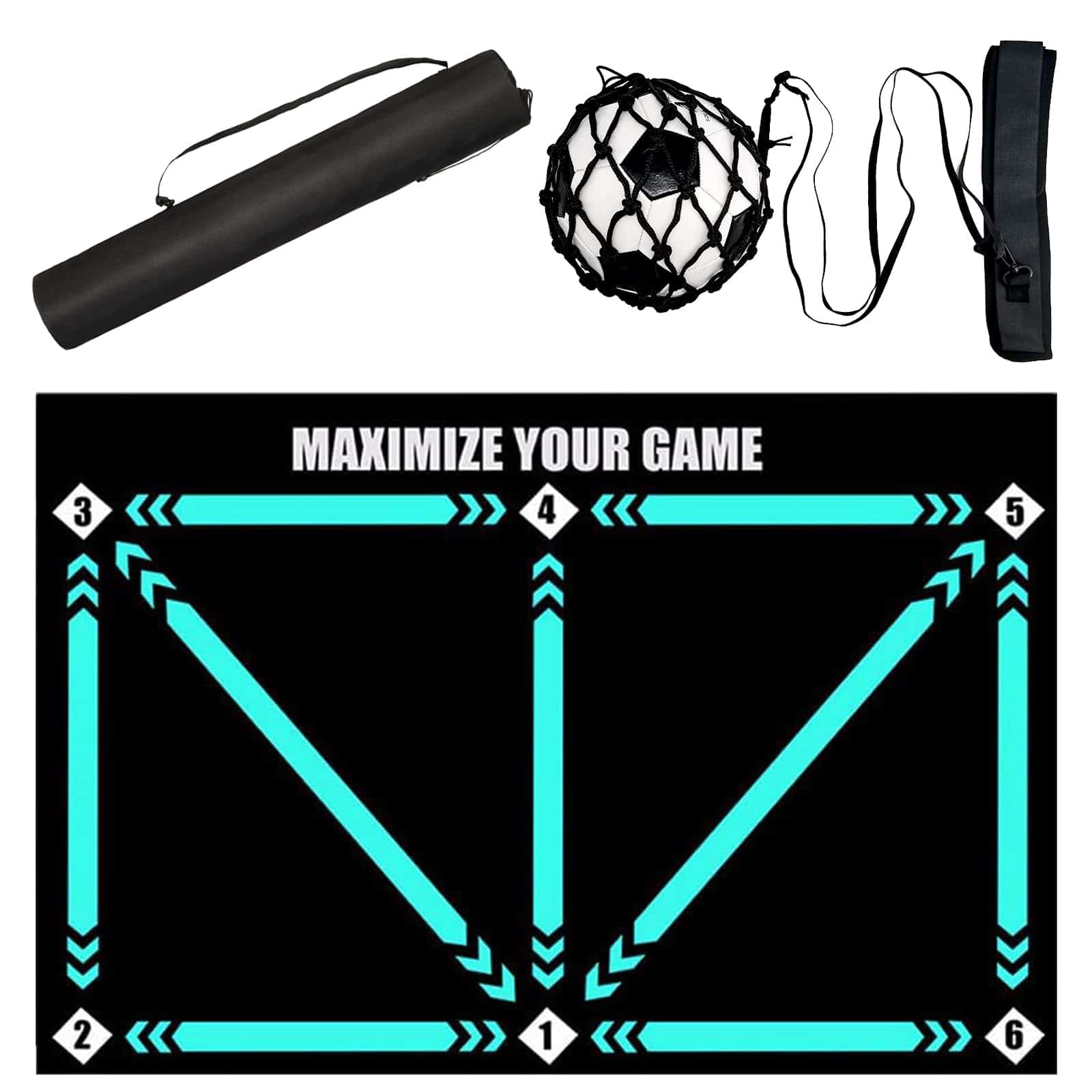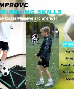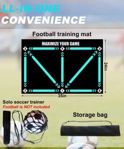 3. CONVENIENCIA TODO TERRENO: Ya sea en casa, en el parque o en el campo de juego, puedes practicar en cualquier momento y lugar. Cada juego de entrenador de fútbol incluye un tapete de entrenamiento de fútbol, una bolsa de almacenamiento y una red de devolución. Ya sea soleado o lluvioso, en interiores o al aire libre, nada puede detener tu amor por el fútbol. Incluso en un espacio limitado, puedes aprovechar al máximo tu tiempo para un entrenamiento efectivo.