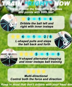 1. ASISTENTE DE ENTRENAMIENTO DE FÚTBOL PERFECTO: Con el tapete de entrenamiento de fútbol, podrás mejorar significativamente tus habilidades futbolísticas. Este tapete de entrenamiento de fútbol está diseñado para mejorar el control del balón, la agilidad y la coordinación corporal. Al entrenar a lo largo de las líneas y puntos cuidadosamente diseñados, podrás dominar fácilmente la habilidad de controlar las curvas. Tanto si eres un principiante como un jugador experimentado, te beneficiarás enormemente de ello.
