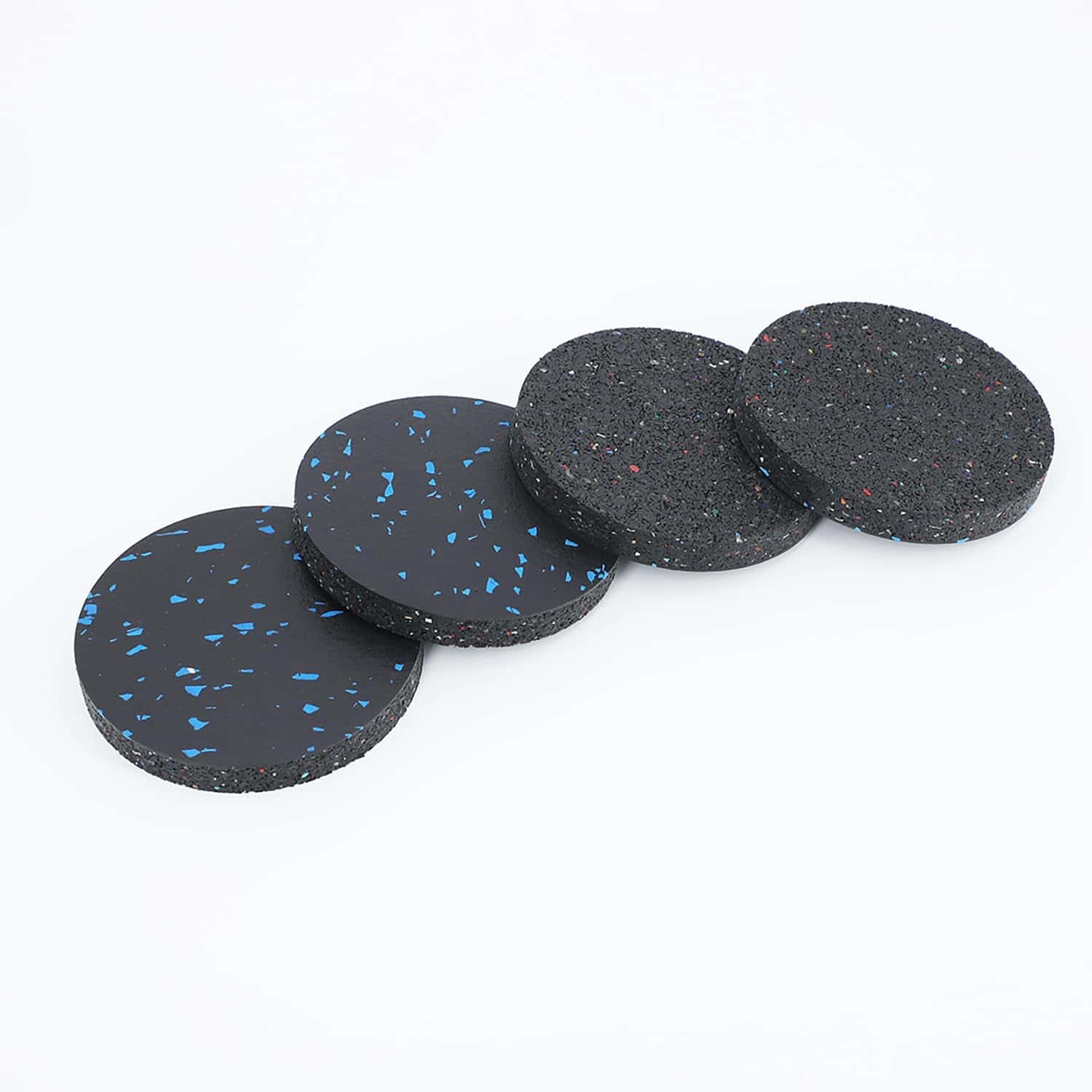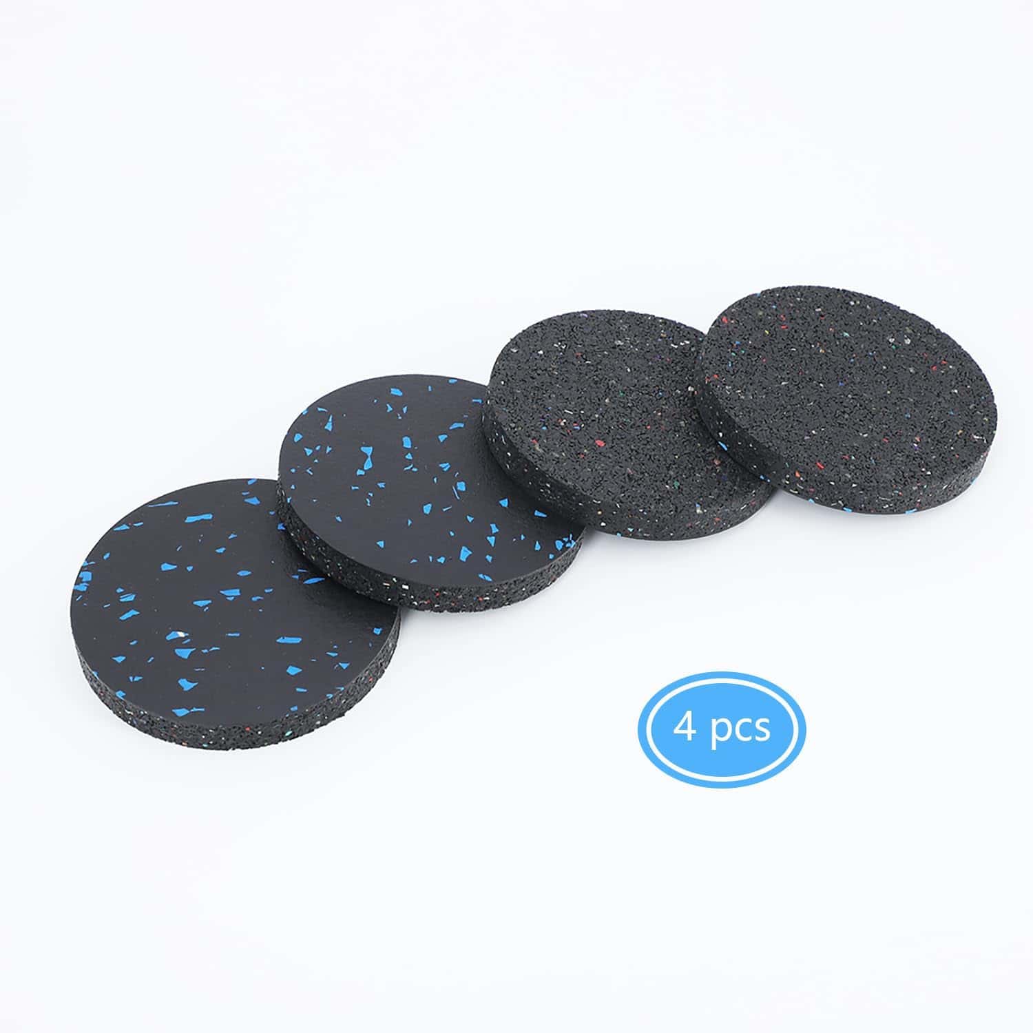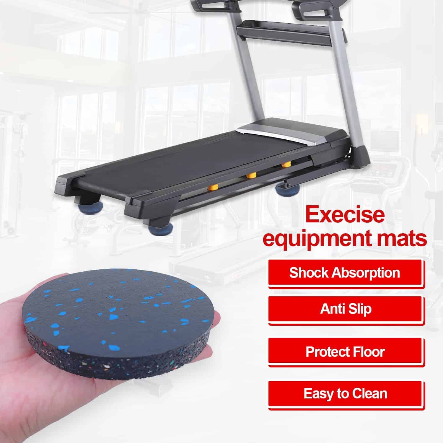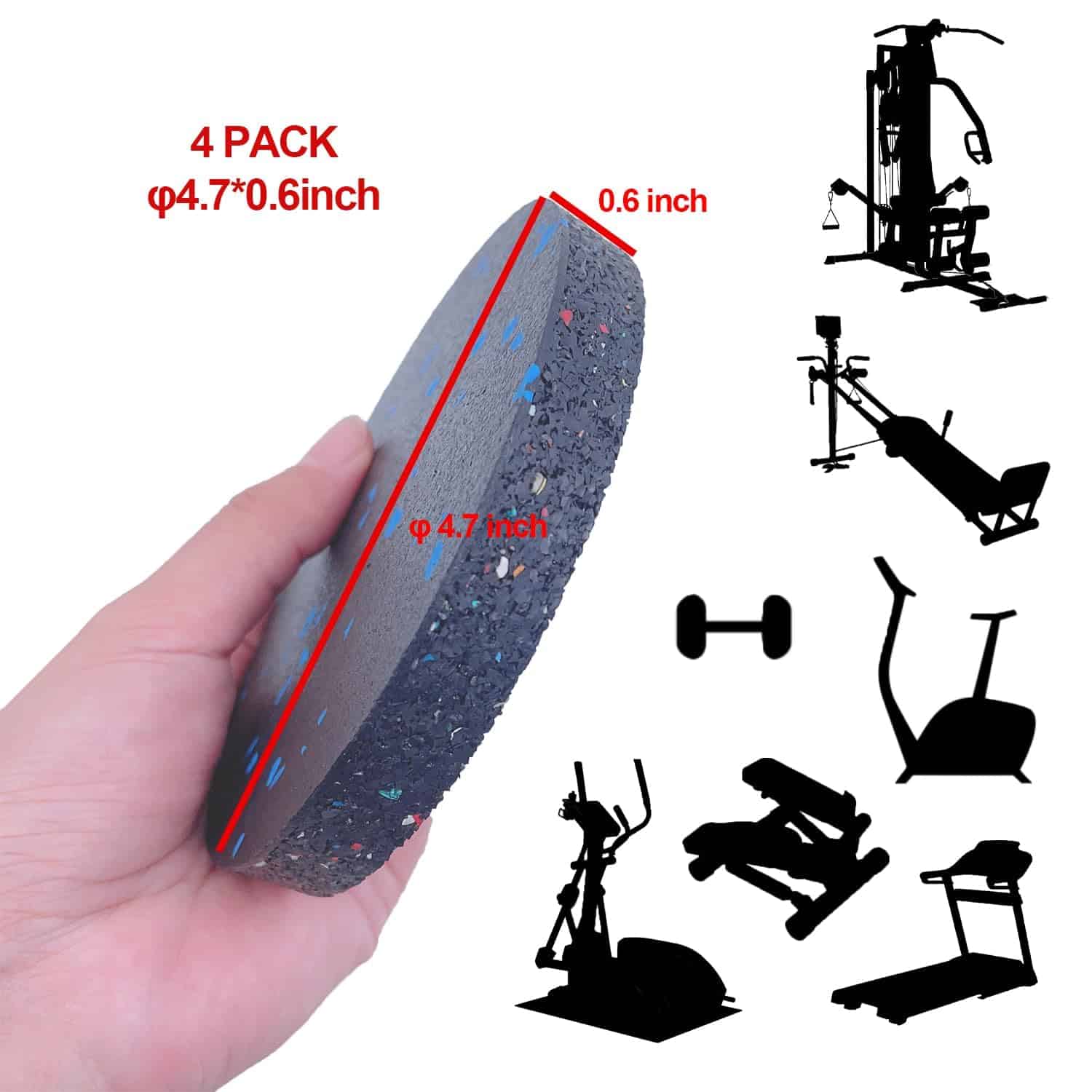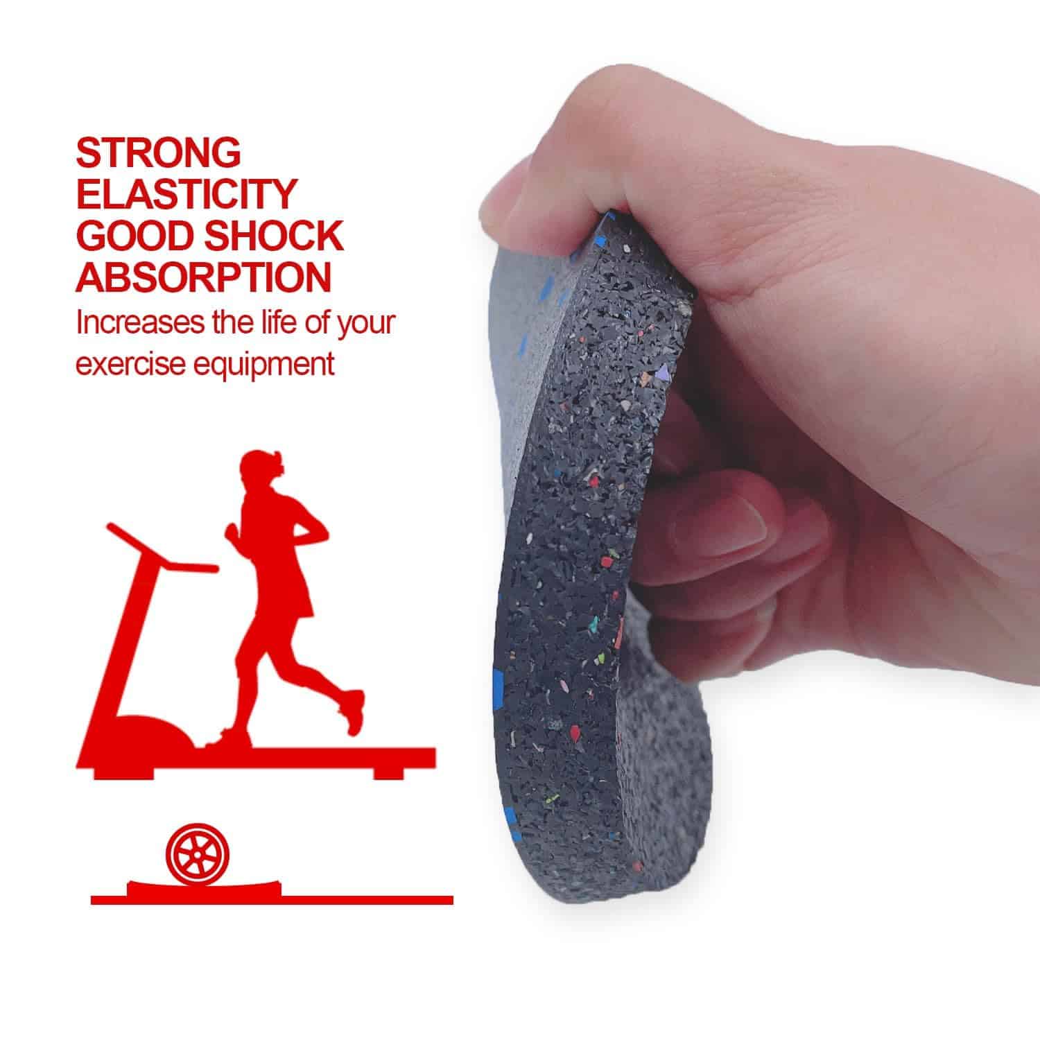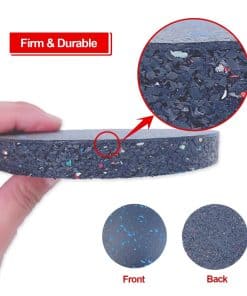 2. Absorción de impactos y reducción de ruido: buena goma elástica, 0.6″ de altura, puede reducir el ruido y proporciona absorción de impactos, protección contra impactos y antideslizantes. También pueden prolongar la vida útil de su equipo de ejercicio.