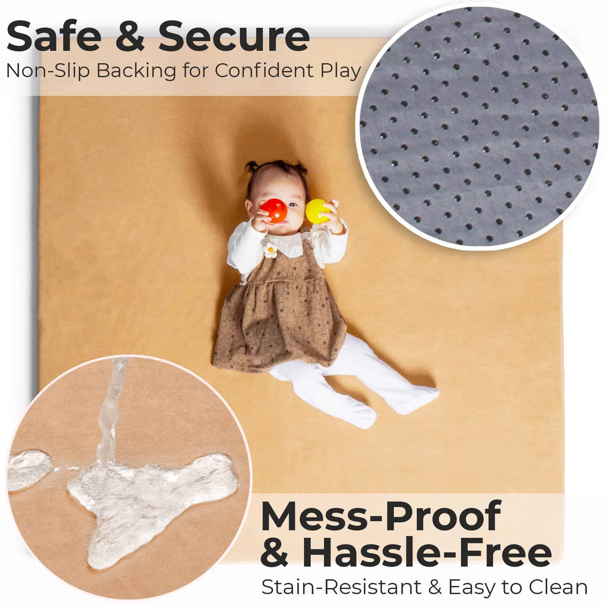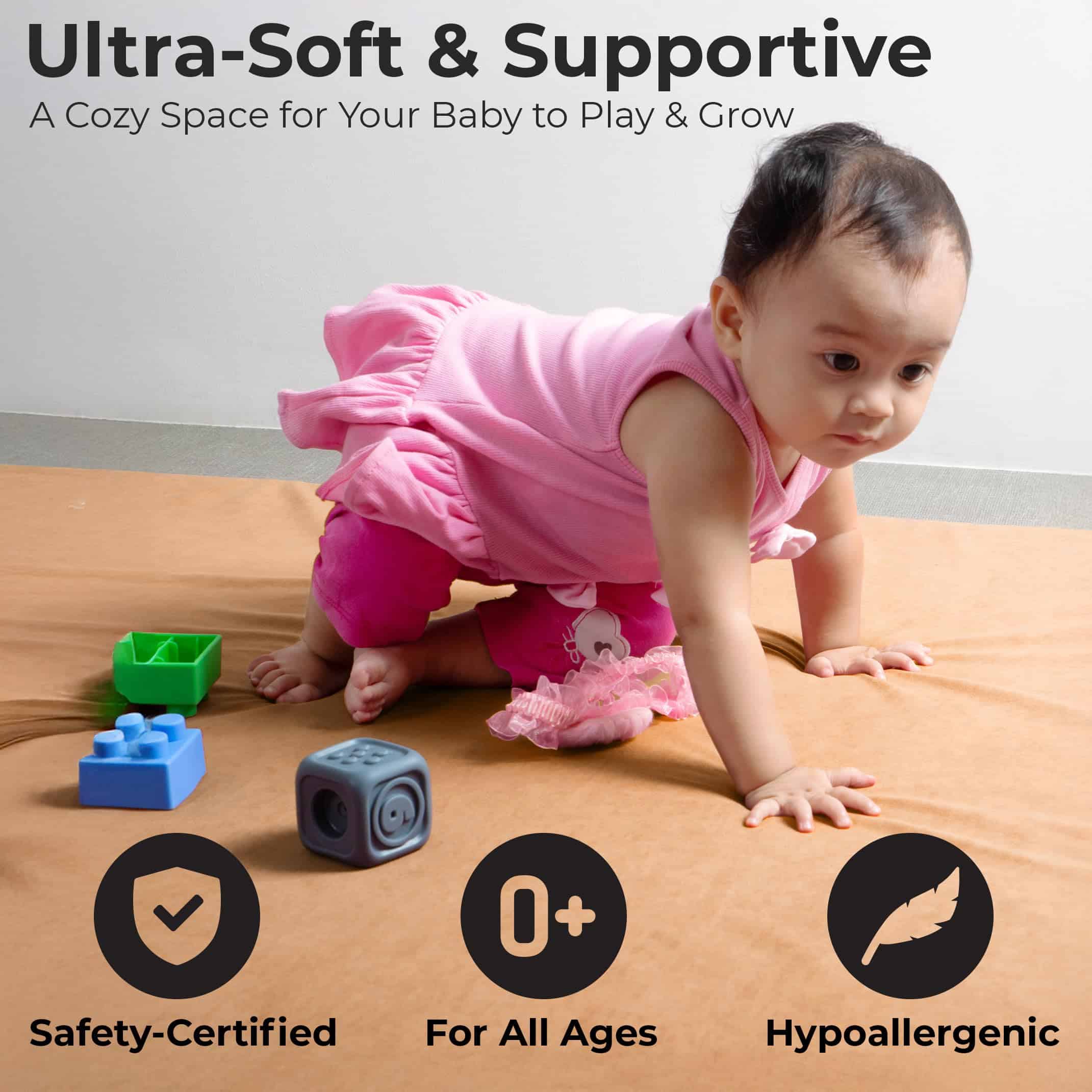 3. Estilo y amigable para el hogar – Dile adiós a los colores brillantes y chocantes de las salas de juegos, nuestro tapete para bebés cuenta con tonos neutros elegantes que complementan perfectamente tu guardería o espacio de vida. Disponible en Rust y Sandstone, este tapete para suelo de bebé estéticamente agradable es a la vez funcional y elegante.