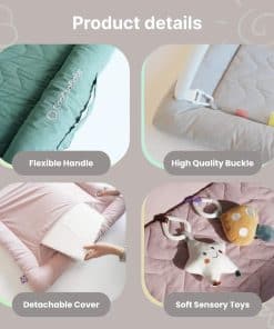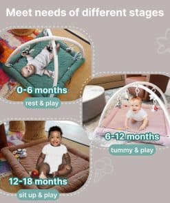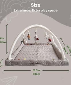 El Tapete de Juego CoocooBaby es el primer parque infantil de tu bebé. Este tapete de juego de tamaño reducido fue diseñado cuidadosamente para estimular y apoyar el desarrollo de tu bebé mientras crea un espacio intencional para jugar. La base bellamente acolchada con bordes ligeramente elevados proporciona un ambiente ideal para que tu bebé practique sus primeros alcances, giros y levantamientos de cabeza, mientras que el Arco de Juguete desmontable enciende sus sentidos a través del color y la textura durante las primeras etapas del desarrollo sensorial. Hecho de tela de algodón premium, ultra suave, estándar OEKO-TEX 100 Diseño compacto intencional; el tamaño perfecto para el bebé y el hogar Pestañas de tela suave perfectamente colocadas para adjuntar fácilmente juguetes y accesorios adicionales Ligero y portátil con un cómodo asa de transporte para un transporte fácil Amigable para viajes Fácil de lavar: ¡todo el tapete de juego es lavable a máquina!