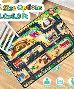 Este tapete de juego para niños de construcción mide 4 x 6 pies / 48 x 72 pulgadas. 0.4» de espesor. Nuestro tapete es fácil de limpiar con aspiradora o lavadora. Perfecto como tapete para dormitorio, tapete para sala de estar y tapete para sala de juegos. 3. Acerca de las arrugas y el grosor: Debido al embalaje al vacío, el tapete puede sentirse más delgado y tener arrugas después de desembalarlo. Por favor, no se preocupe, tomará de 3 a 7 días para que el tapete recupere su forma original. También puede utilizar una plancha de vapor para alisar las arrugas causadas por los pliegues de envío. 4. Idea de regalo ideal para niños: Nuestro equipo de diseño independiente de tapetes de juego para niños crea patrones únicos. Cada diseño está cuidadosamente elaborado. Si tiene alguna idea o pregunta, le brindaremos un excelente servicio. Nuestros tapetes son la elección perfecta para cualquier celebración.