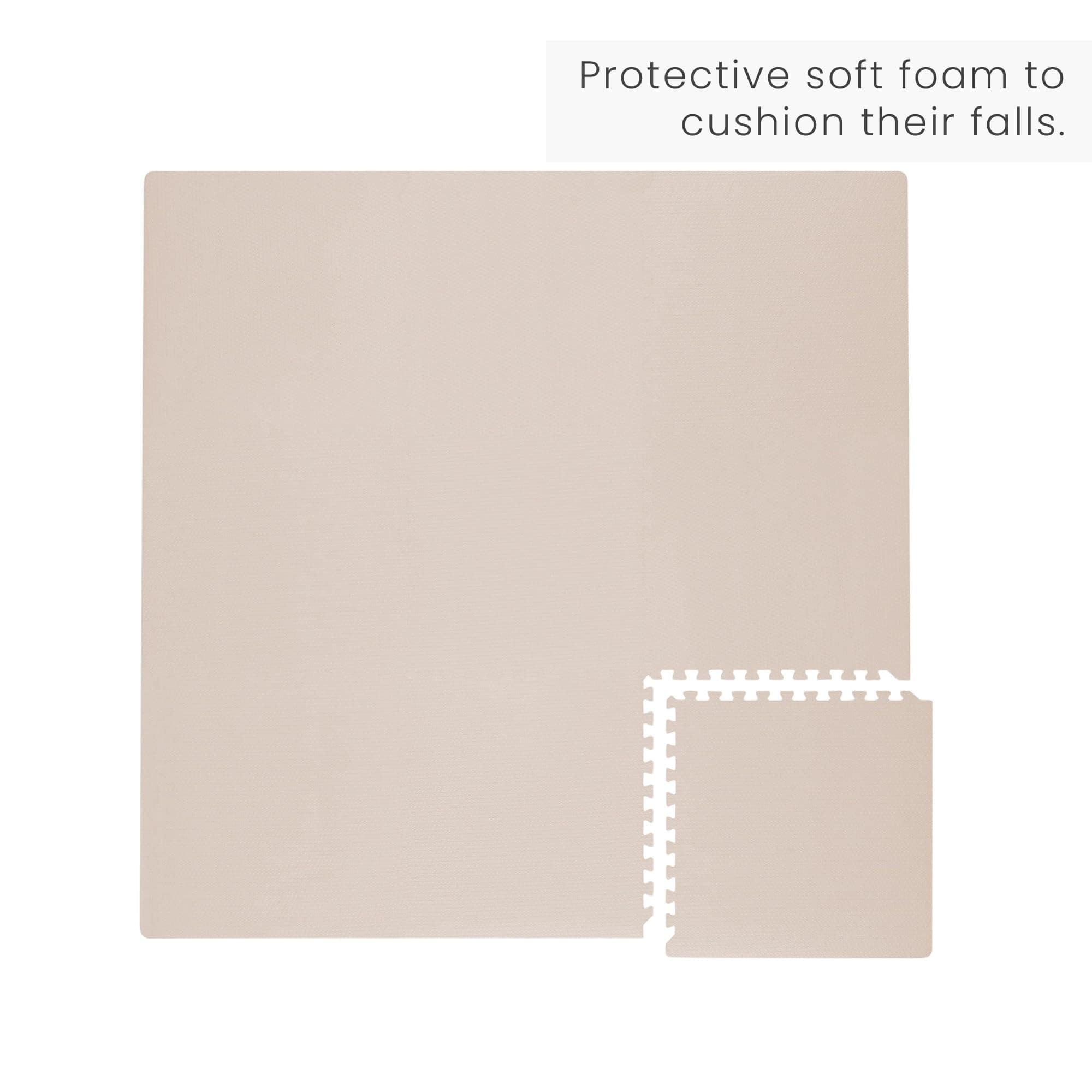 1. Tamaños personalizables: Nuestro paquete estándar, que incluye 9 piezas de 4 x 4 ensambladas. Expande tu espacio fácilmente comprando varios sets. 2. Diseño elegante: Con colores sólidos sin patrones ruidosos, nuestros tapetes de juego mejoran sin problemas la estética de diferentes espacios. Desde salas de juegos, guarderías, salas familiares, salas de estar, oficinas, guarderías y escuelas, el diseño elegante de Toddlekind realza cualquier entorno. 3. Materiales premium: Disfruta de la sensación lujosa de nuestro tapete de juego para bebés, fabricado con espuma suave ultra gruesa. Específicamente diseñado para tiempo boca abajo, gateo o esos preciosos primeros pasos, ofrece una superficie suave y resistente para diversas actividades. 4. Fácil de limpiar: Fabricados con espuma EVA, nuestros tapetes de juego aseguran un mantenimiento sencillo. Con un simple paño húmedo, te garantizan una limpieza rápida y sin complicaciones, manteniendo de manera fácil un ambiente de juego higiénico. 5. Normas de seguridad certificadas: Comprometidos con la seguridad, los tapetes de juego de Toddlekind cuentan con certificaciones de EE. UU. e UE, superando los requisitos de la Directiva de Juguetes. Rigurosamente probados por toxicidad, metales pesados, plomo, formamida y ftalatos, garantizan un espacio de juego seguro para los niños. 6. Innovación ecoconsciente: Estableciendo un nuevo estándar en sostenibilidad, los tapetes de juego de Toddlekind lideran el mercado con un diseño innovador. Fabricados con materiales ecoconscientes, nuestros tapetes cuentan con un aditivo biológico único, garantizando una biodegradación acelerada al final de su ciclo de vida. Acepta un tapete de juego que no solo prioriza la seguridad y comodidad de tu hijo, sino que también contribuye a un futuro más verde y consciente del medio ambiente. Transforma tu espacio con Toddlekind – donde la seguridad, el estilo y la sostenibilidad convergen.