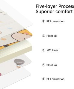 1. Dimensiones Extragrandes: Borde completo, con generosas medidas de 79 x 71 pulgadas, proporcionando suficiente espacio para la hora del panza abajo, el tiempo de juego y la práctica de arrastrarse, y tapete plegable para bebés y tapete de hora del panza.