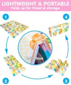 Libre de BPA, Seguro para los Niños: Hecho del material XPE más seguro del mundo, completamente no tóxico, sin olor. Lugar extremadamente seguro e higiénico para que los bebés jueguen. Tapete de Juego de Espuma Impermeable: El tapete de juego para bebés impermeable es súper fácil de limpiar con toallitas húmedas para bebé o paños cuando se ensucia con babas, derrames, residuos de alimentos. Tapete de Juego Plegable: Este tapete de piso para bebé se pliega y es ligero, se puede usar sobre baldosas, piso de madera o concreto para crear áreas de juego acolchadas. Grosor de 0.6 pulgadas: Comparado con otros en el mercado, el tapete de gateo para bebé BAMMAX es más grueso, con un grosor de hasta 0.6 pulgadas para mantener seguros a los bebés. Educativo: Mientras los bebés juegan, descubren el mundo que les rodea para estimular los sentidos de nuestro bebé y ayudarles a practicar nuevas habilidades. Por qué el tapete de juego de espuma XPE es mejor Los tapetes de gateo BAMMAX están hechos de un material llamado espuma XPE. Es una alternativa más segura a los tapetes de juego tradicionales de EVA y PVC. Los tapetes de juego de espuma XPE están libres de ftalatos, BPA, látex y formaldehído, que es lo que causa ese olor tóxico cuando abres otros tapetes de juego. La seguridad y la conformidad son nuestra principal preocupación y nuestro tapete de juego ha sido aprobado por CPC, ASTM en América. El XPE es: Libre de BPA y Ftalatos, Libre de Látex y Formaldehído, Inodoro y sin olor, Absorbente de ruido y de impacto y Ultra acolchado.