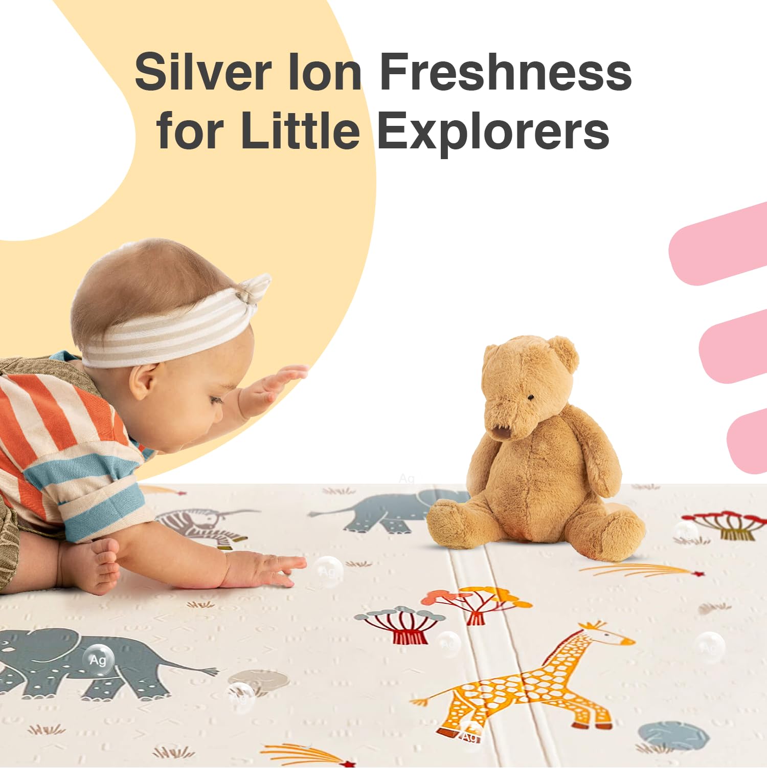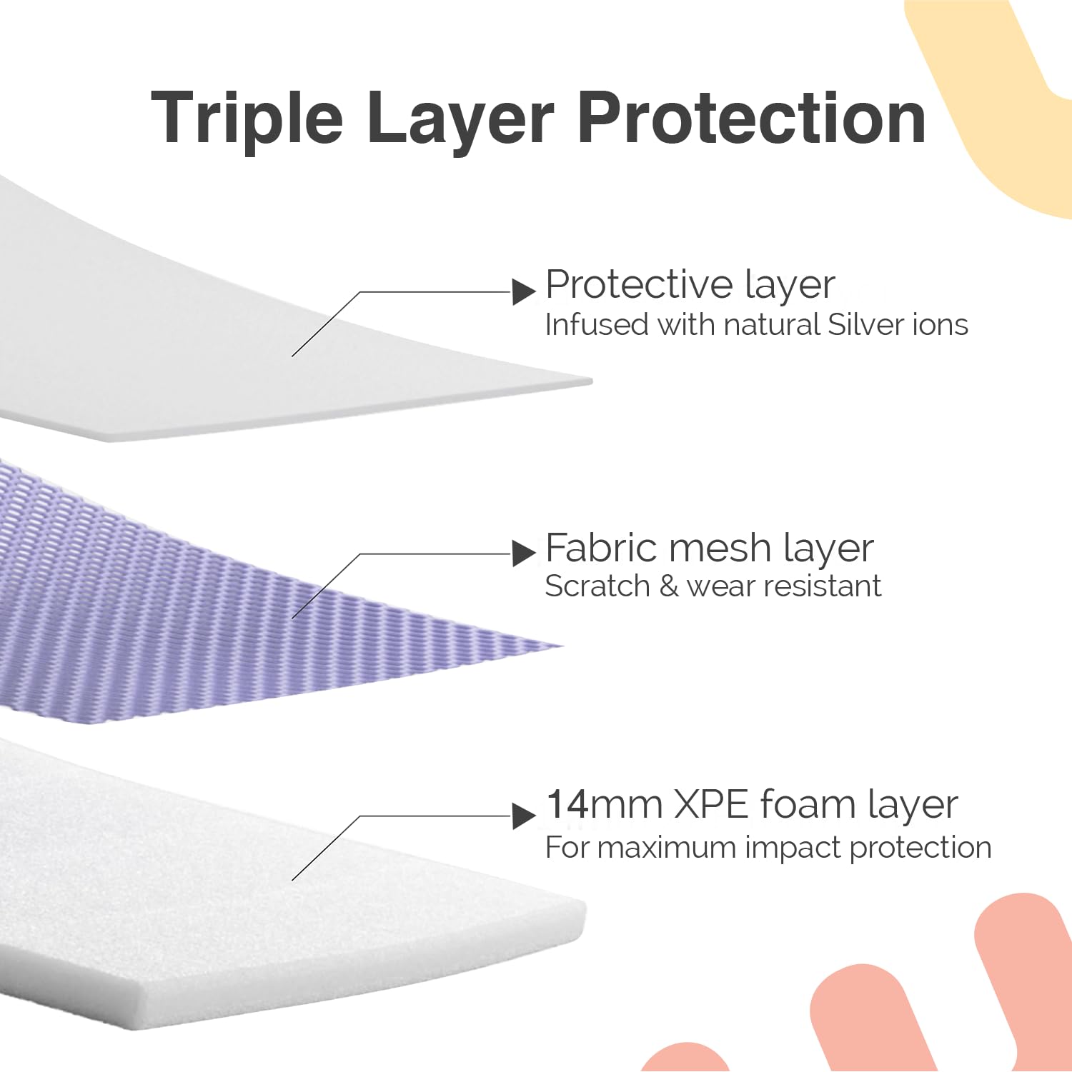 1. PROTECCIÓN DE 3 CAPAS- El Tapete de Juego para Bebés PurePlay cuenta con una capa avanzada impregnada con iones de plata naturales para mantener el tapete fresco y libre de olores. Este duradero tapete para bebés proporciona amortiguación con su espuma XPE de 14mm, haciéndolo un tapete de actividad seguro y cómodo para el uso diario. Perfecto para crear un espacio seguro para que juegue tu pequeño.