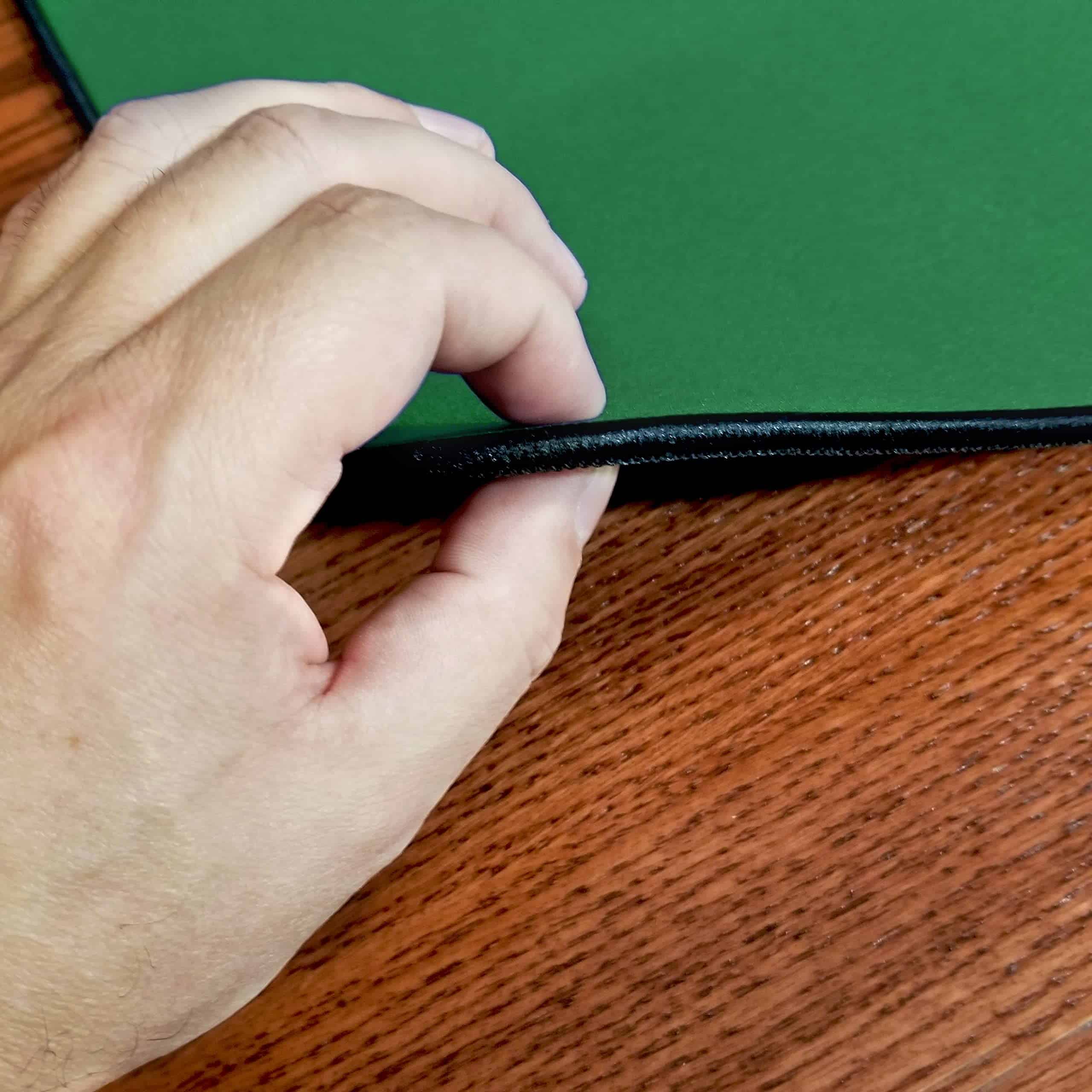 2. Costura de Borde Empotrada: La costura reforzada está meticulosamente diseñada con un perfil más bajo que el resto del tapete, por lo que no atrapará las cartas si se deslizan hacia el borde.