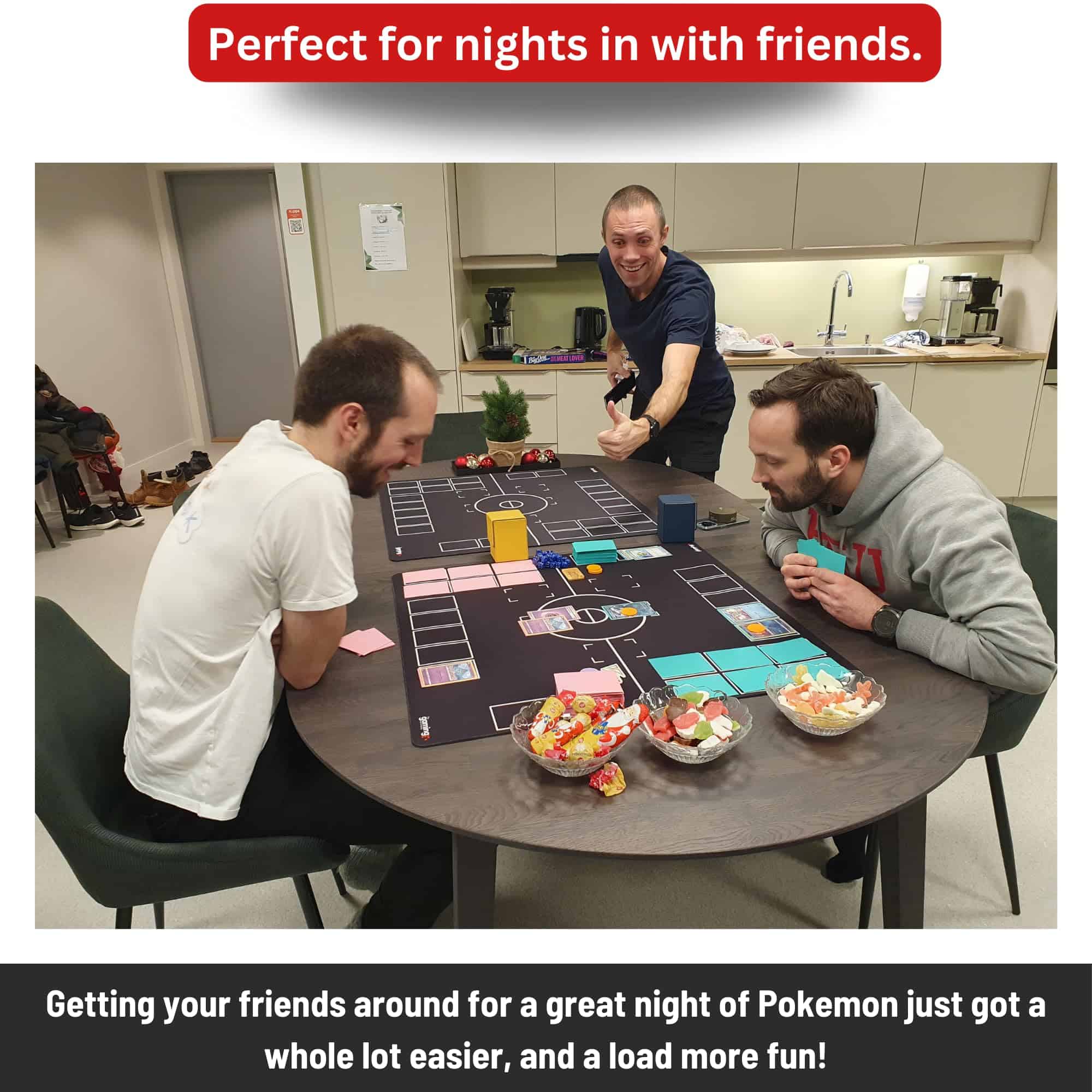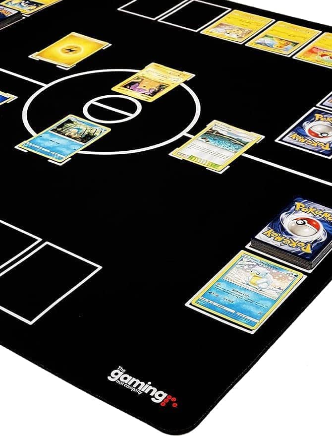 Ahora puedes llevar verdaderamente tu tapete de juego de cartas Pokemon contigo a donde sea con nuestro Deluxe Heavy Duty Tapete de Juego Pokemon en Blanco y Negro y Estuche Tubular de Transporte de The Gaming Mat Company. Nuestro estuche tubular GMC está diseñado para ser el compañero perfecto de nuestra colección de tapetes de juego Pokemon, con medidas de 29.5″ x 3.6″ (750mm x 90mm). Como esperarías de The Gaming Mat Company, solo se utilizan los mejores materiales para fabricar tanto nuestro tapete de batalla de cartas Pokemon como nuestro estuche. La superficie de juego del tapete Pokemon mide 28.4″ x 28.4″ x 0.16″ (720mm x 720mm x 4mm), está fabricada con una base de goma obtenida de forma sostenible que mide un grueso de 0.16 pulgadas (4mm), ¡superando a otros tapetes más delgados de 2mm! El tejido superior es liso y protege tus cartas durante el juego, y está acabado con nuestro hermoso diseño clásico de GMC para la colocación de cartas Pokemon, para que puedas organizar fácilmente y dominar tus batallas. La bolsa estuche tubular de The Gaming Mat Company está hecha con un fuerte tubo interno de PVC cubierto de tela Oxford 600D, una tapa con cierre de cremallera y un cómodo asa de transporte y correa ajustable para el hombro, para mayor comodidad. Acabado hermosamente con nuestro logo de The Gaming Mat Company impreso en la tela Oxford. Es seguro decir que llamarás la atención con esta envidiable combinación cuando la saques en tu torneo local o noche de juegos en casa con tus amigos. El estuche tubular de almacenamiento también es perfecto para simplemente guardar tu tapete de juego Pokemon y mantenerlo a salvo.