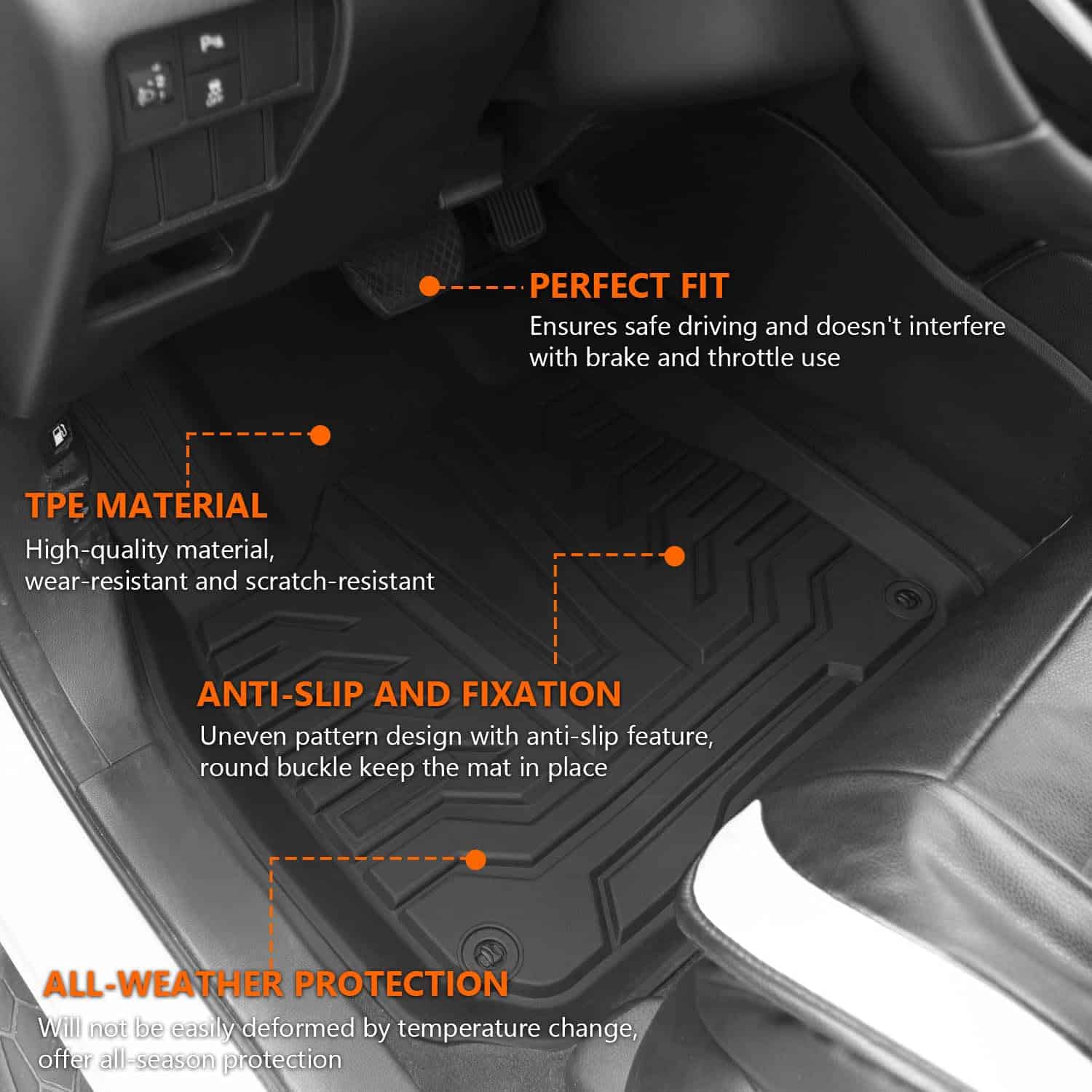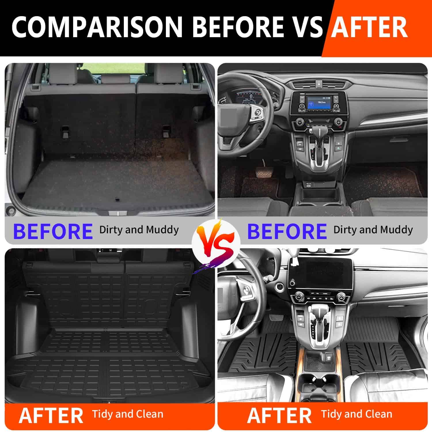 Fácil de instalar: Las alfombras para CR-V son fáciles de instalar. Las alfombras se pueden limpiar fácilmente pasando un paño húmedo o simplemente enjuagándolas con agua y secándolas.