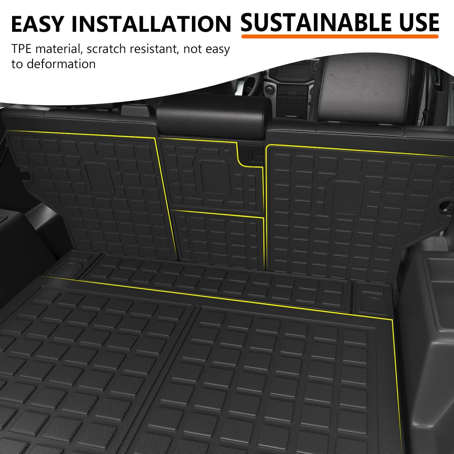 Material de alta calidad: Nuestro tapete de respaldo Toyota 4Runner y tapete de maletero están hechos de material TPE de alta calidad. No tienen mal olor, lo que te hará sentir cómodo en tu automóvil.