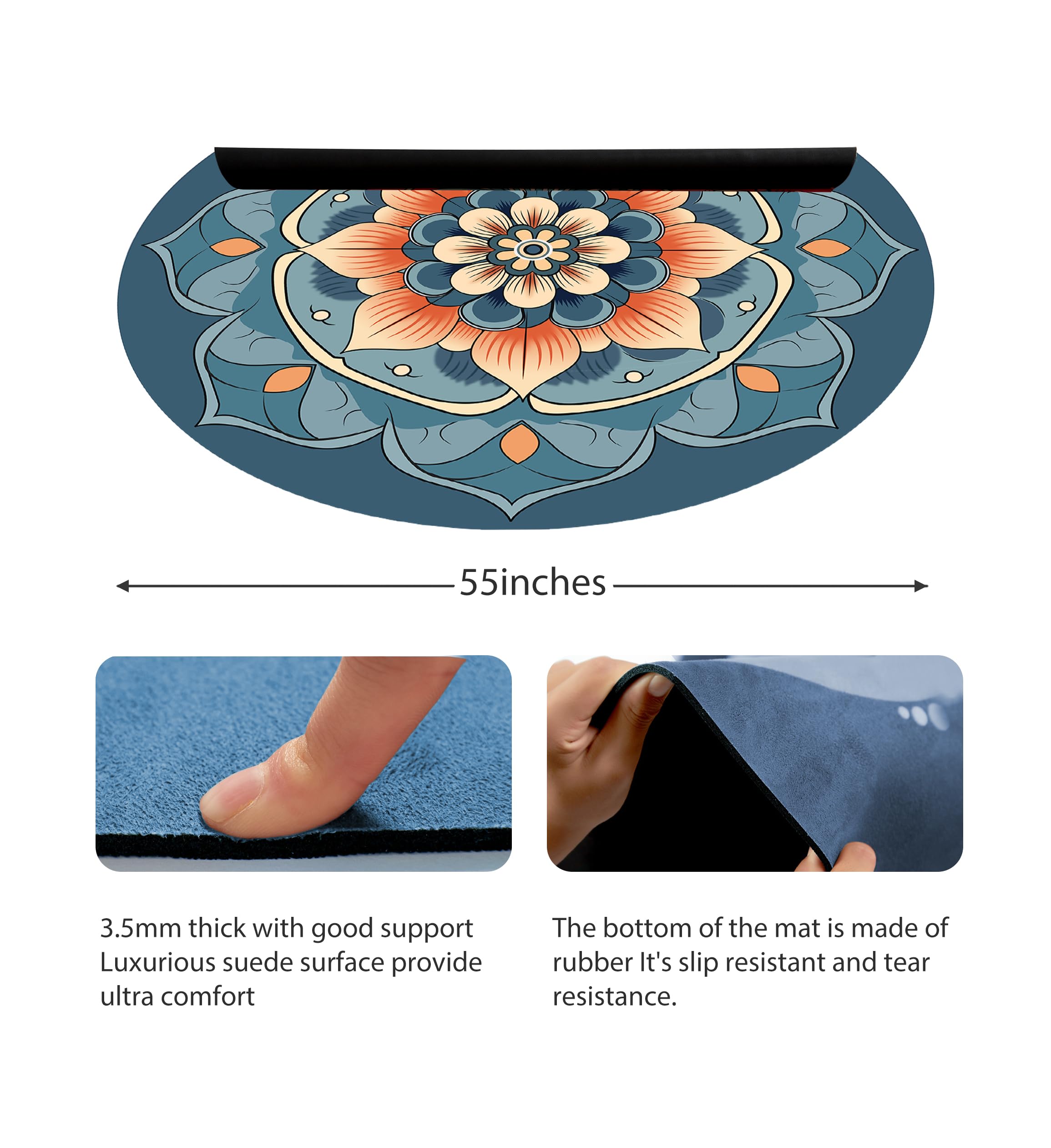 1. Tamaño: el super gran tapete circular de yoga de IKULE con un diámetro de 55 pulgadas es suficiente para usar durante el ejercicio. Un grosor de 3.5mm puede prevenir la pérdida de puntos de soporte durante los movimientos y garantizar menos riesgo de lesiones durante el entrenamiento.