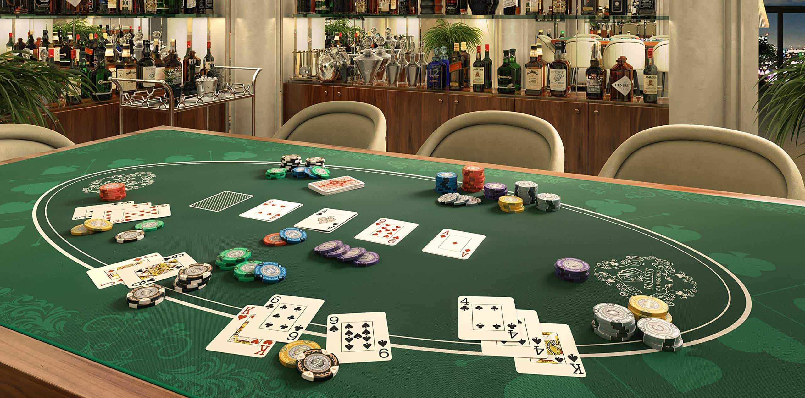 Tapete de mesa de poker Bullets Playing Cards – Diseño de