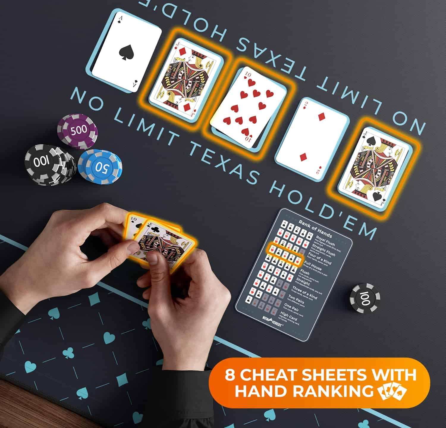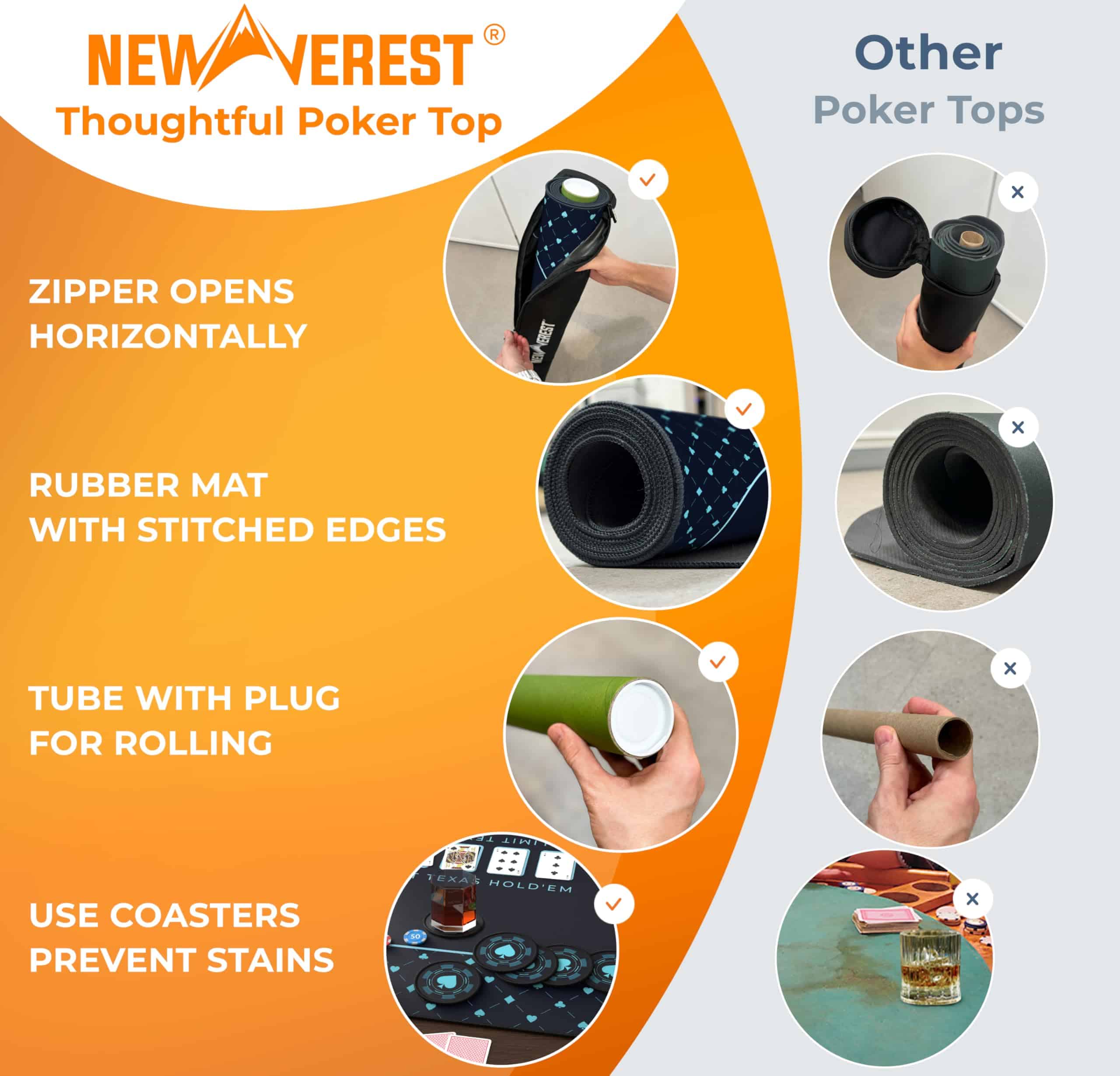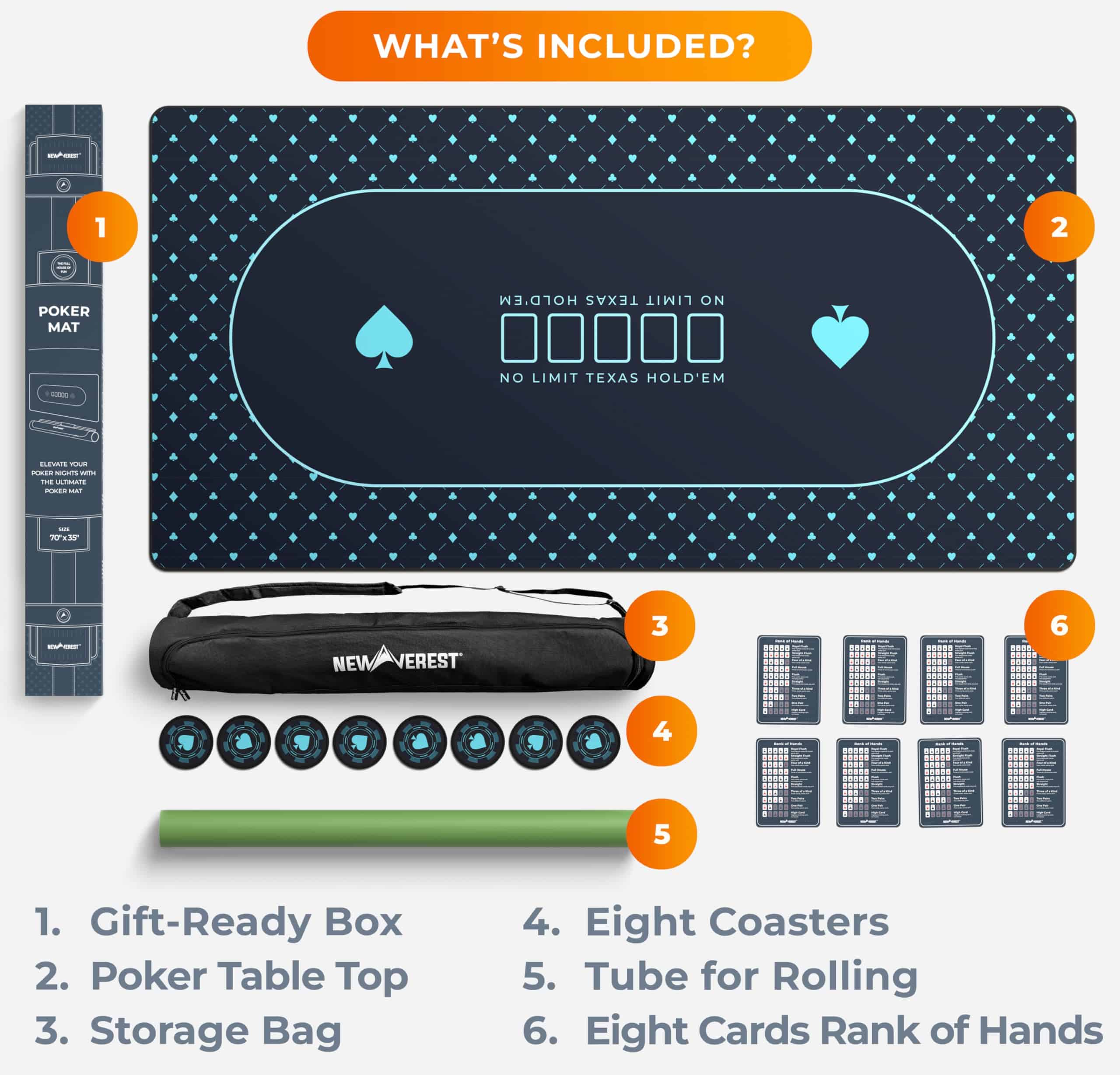 Tapete de mesa de póker Newverest 70″ x 35″, Tapete de