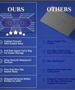 2. SE ADHIERE SEGURAMENTE A CUALQUIER SUPERFICIE – ¿Cansado de tapetes de poker que se deslizan durante el juego Esta cubierta de mesa de poker cuenta con una base antideslizante que la mantiene firmemente en su lugar, para que puedas centrarte en tu mano ganadora.