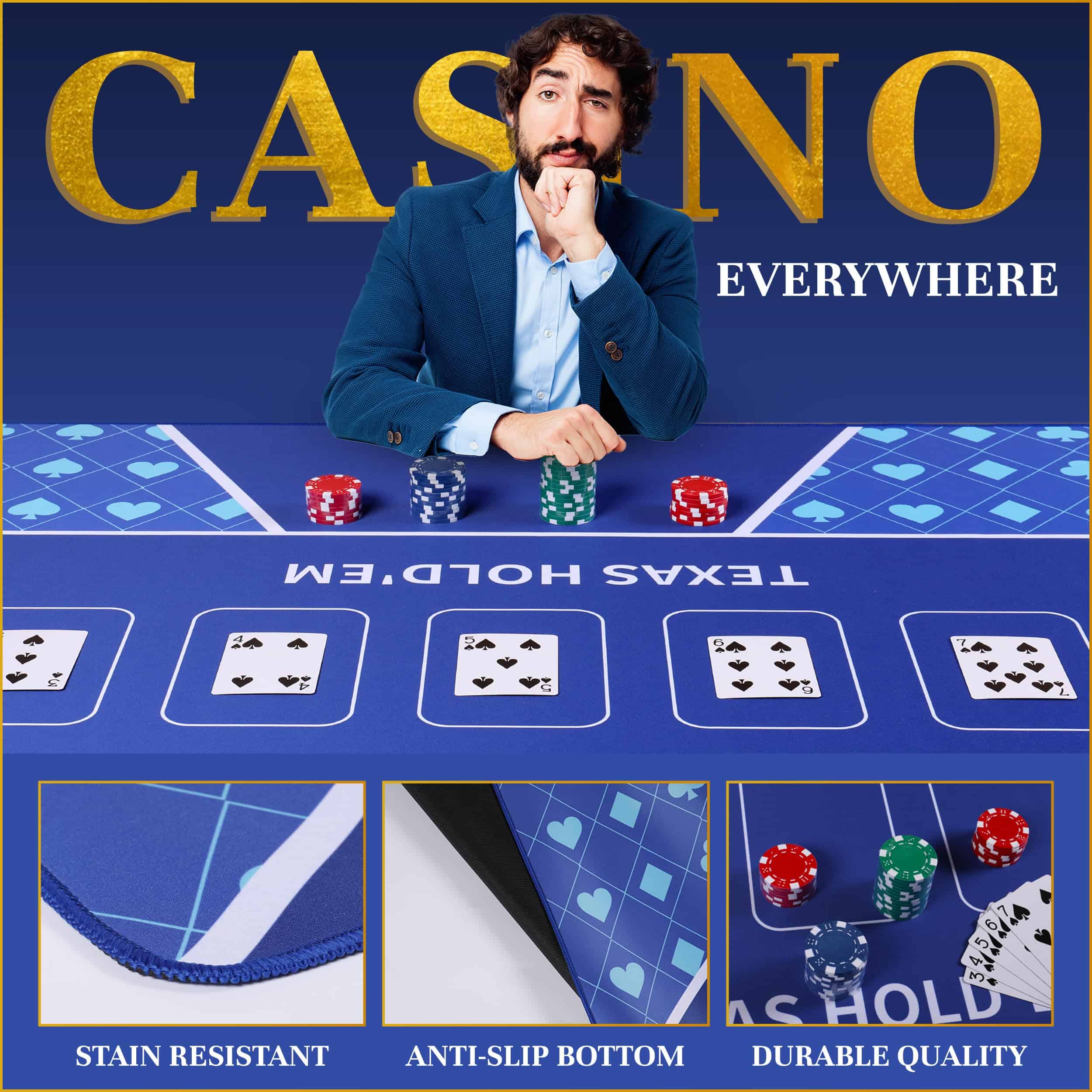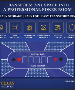 ¡Lleva la emoción del casino a tu hogar! Este tapete de poker plegable diseñado para ser portátil, te permite organizar tu noche de poker donde quieras. Es perfecto para juegos improvisados con amigos.