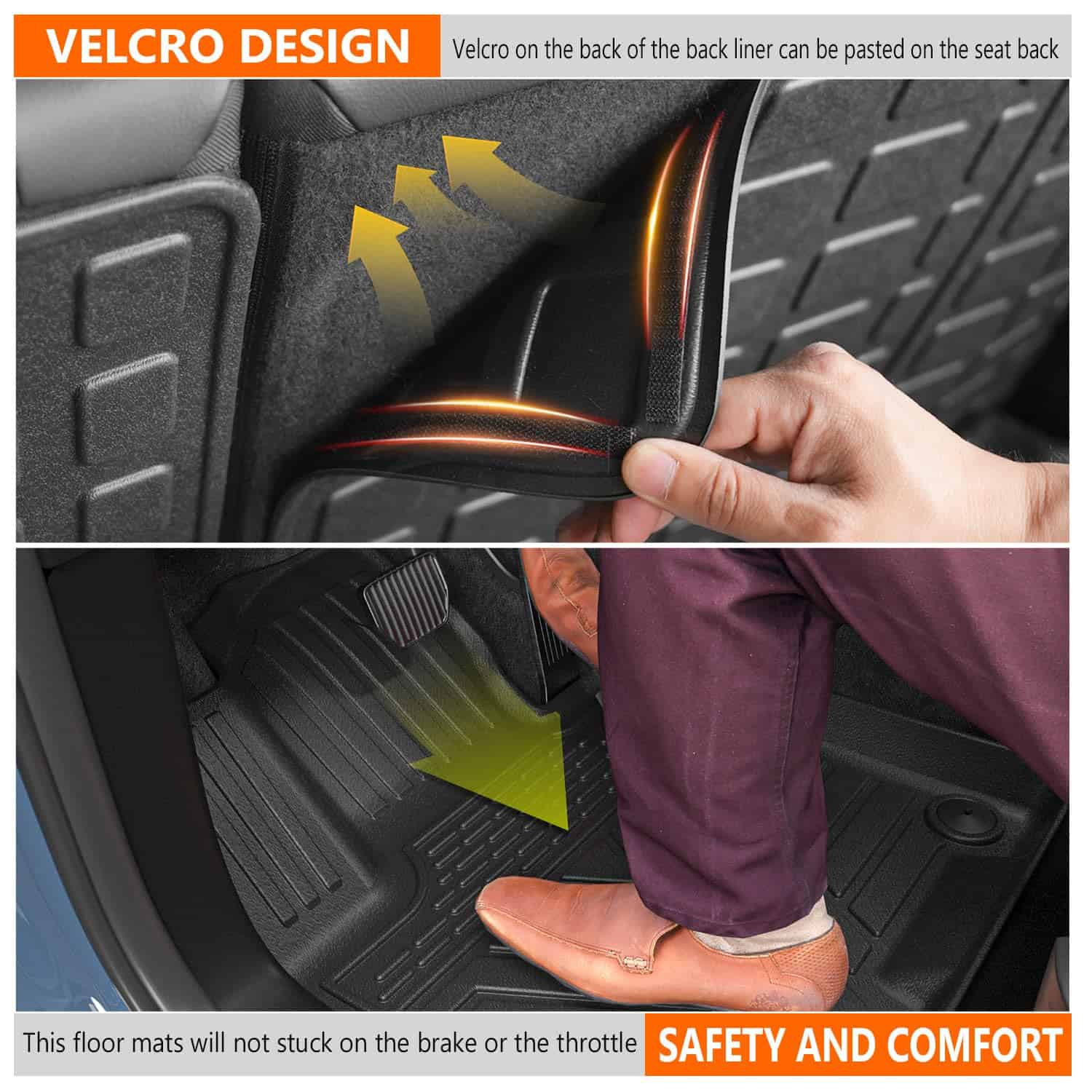 4. Instalación Sencilla: Nuestros tapetes de carga y revestimiento de respaldo compatibles con Hyundai Tucson 2022-2025 son muy fáciles de instalar. Solo necesita colocarlos en el lugar correcto. Los tapetes de respaldo tienen velcro en la parte posterior, por lo que no necesita perforar para la instalación. La primera fila de tapete de piso se puede fijar y no afectará el uso del acelerador y el freno. Nuestros tapetes son muy fáciles de limpiar, solo límpielos con agua.