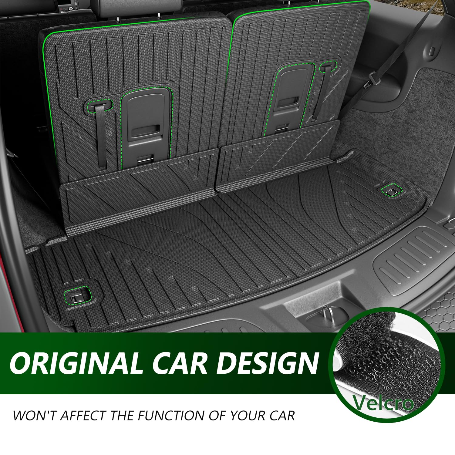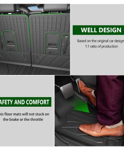 2. Material Premium TPE: Nuestro protector de respaldo de asiento de la tercera fila, tapete de carga y tapetes de piso de 7 asientos están hechos de material TPE de calidad que tiene buena flexibilidad. El material TPE proporciona un tacto suave y mantiene la resistencia al desgaste y a las roturas. Por favor, tenga la seguridad de usarlo porque no tiene mal olor y podría usarlo durante mucho tiempo.