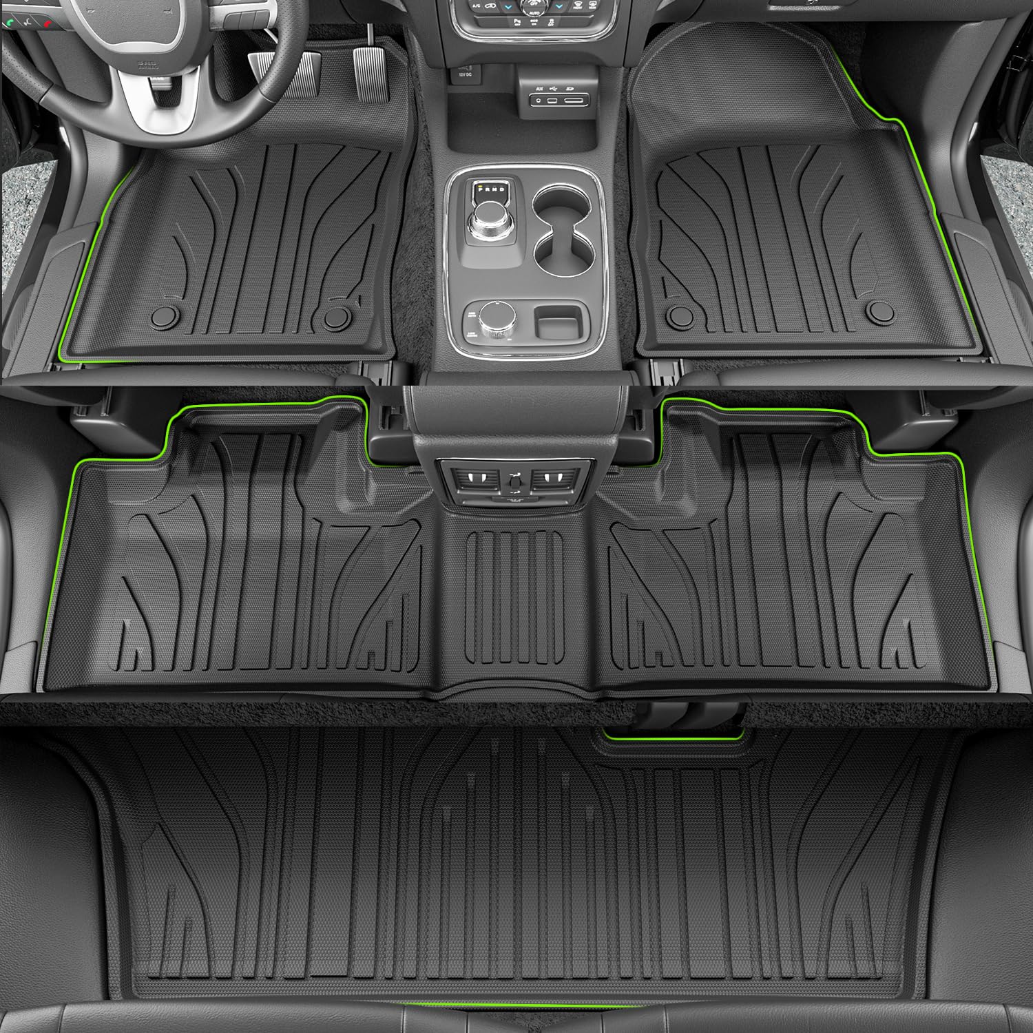 4. Fácil de Instalar: La instalación de estos protectores de carga y tapetes de piso es fácil y no requiere herramientas adicionales. Solo necesita colocar el tapete de piso y el tapete de carga en el lugar correcto. Los tapetes de piso en la primera fila están asegurados para evitar que se muevan. Los tapetes de respaldo compatibles con Dodge Durango de 7 asientos 2016-2025 vienen con velcro para sujetarlos.