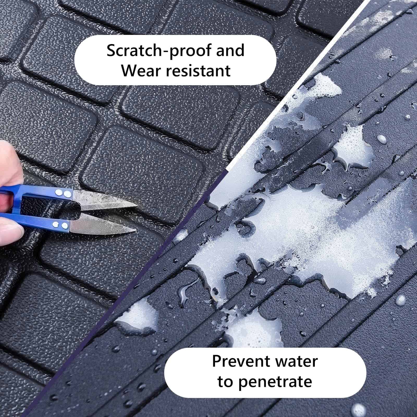 2. Material de Alta Calidad: El tapete de maletero trasero y los tapetes de piso son flexibles, plegables. Están hechos de material de TPE de alta calidad, que protege el interior del coche de daños y no tiene olor desagradable.