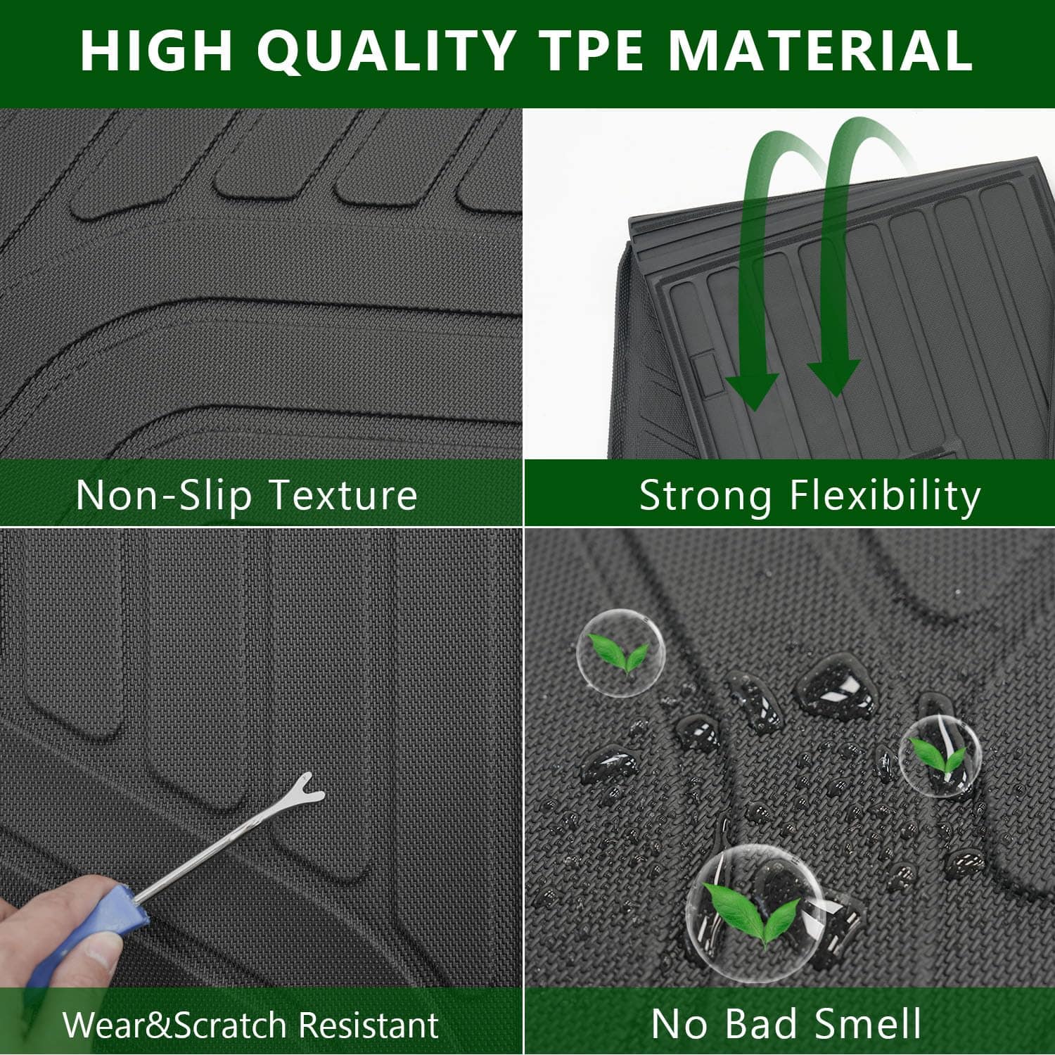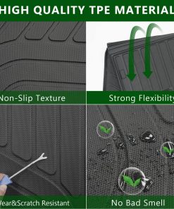 2. Material Premium TPE: Nuestro tapete de carga con respaldo compatible con el tapete de piso Volkswagen Atlas está hecho de TPE de primera calidad sin olor desagradable. Son altamente resistentes al desgaste y flexibles, y garantizan un rendimiento duradero en diversas condiciones ambientales. También son impermeables y fáciles de limpiar, podrás usarlos durante mucho tiempo.