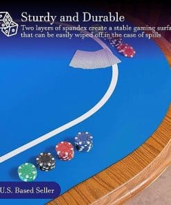 Dale un toque especial a tu próxima noche de juegos con un auténtico ambiente de casino. El tapete de mesa de póker Jigitz imita una sala de juegos de noche. El tapete de mesa de juegos mide 70 x 35 pulgadas (178 x 89 cm) cubriendo la mayoría de las superficies. El tapete de goma antideslizante ofrece una superficie tranquila para que los dados rueden y para que las cartas se deslicen. La base de goma inferior se sujeta firmemente a tu superficie evitando golpes o deslizamiento del tapete. Incorpora este gran tapete de goma para múltiples juegos incluyendo juegos de mesa, cartas, dados y juegos de rol. El estuche proporciona portabilidad para llevar tus aventuras de juegos a colas deportivas o en viajes de camping. Este paquete incluye 1 tapete de cartas en tu elección de color (Verde y Blanco, Azul y Blanco, Rojo y Blanco, o Negro y Blanco) y un estuche negro con correa. Superficie de juego suave: El Tapete de Mesa de Póker Jigitz ofrece una superficie tranquila y antideslizante para jugar juegos; el tope de mesa de juego mide 70 x 35 pulgadas (178 x 89 cm); el tapete de la mesa de juego es suave al tacto y permanecerá en su lugar durante las sesiones de juego Tapete de juego portátil: La cubierta de la mesa de póker es portátil para juegos sobre la marcha; el delgado tapete de goma para juegos se enrolla firmemente en un estuche que se puede guardar en lugares pequeños; lleva tu tapete a fiestas de cola de zorro, de camping o reuniones familiares e instantáneamente proporciona una experiencia de juego profesional en cualquier lugar Agarre antideslizante: El tapete de goma resistente tiene una base antideslizante que se adhiere firmemente a la mesa; la capa superior del tapete antideslizante tiene dos capas de licra que proporcionan una superficie resistente durante las sesiones de juego; puedes colocar vasos en el tapete de la mesa de cartas y limpiar cualquier derrame con un paño Superficie tranquila: El tope de mesa de juego de mesa tiene una superficie suave que permite que las cartas se deslicen pero no se deslicen; tira los dados en silencio sobre la cubierta de la mesa de juegos; ofrece una auténtica mesa de póker de casino en tu próxima fiesta o permítete una noche de juegos tranquila en casa mientras los niños duermen jugando en el suave tapete de goma Contenido: Este paquete incluye 1 tapete de cartas en tu elección de color (Verde y Blanco, Azul y Blanco, Rojo y Blanco, o Negro y Blanco) y un estuche negro con correa; Recomendamos ventilar la alfombra antes de usarla Los residentes de California: Advertencia de Prop 65: Este producto puede contener una sustancia química conocida por el Estado de California como causante de cáncer, defectos de nacimiento u otros daños reproductivos. Este producto cuenta con una garantía del fabricante contra defectos de materiales y mano de obra por un período de UN (1) AÑO a partir de la fecha de compra original. Consulta nuestra política de devolución del vendedor para más detalles.