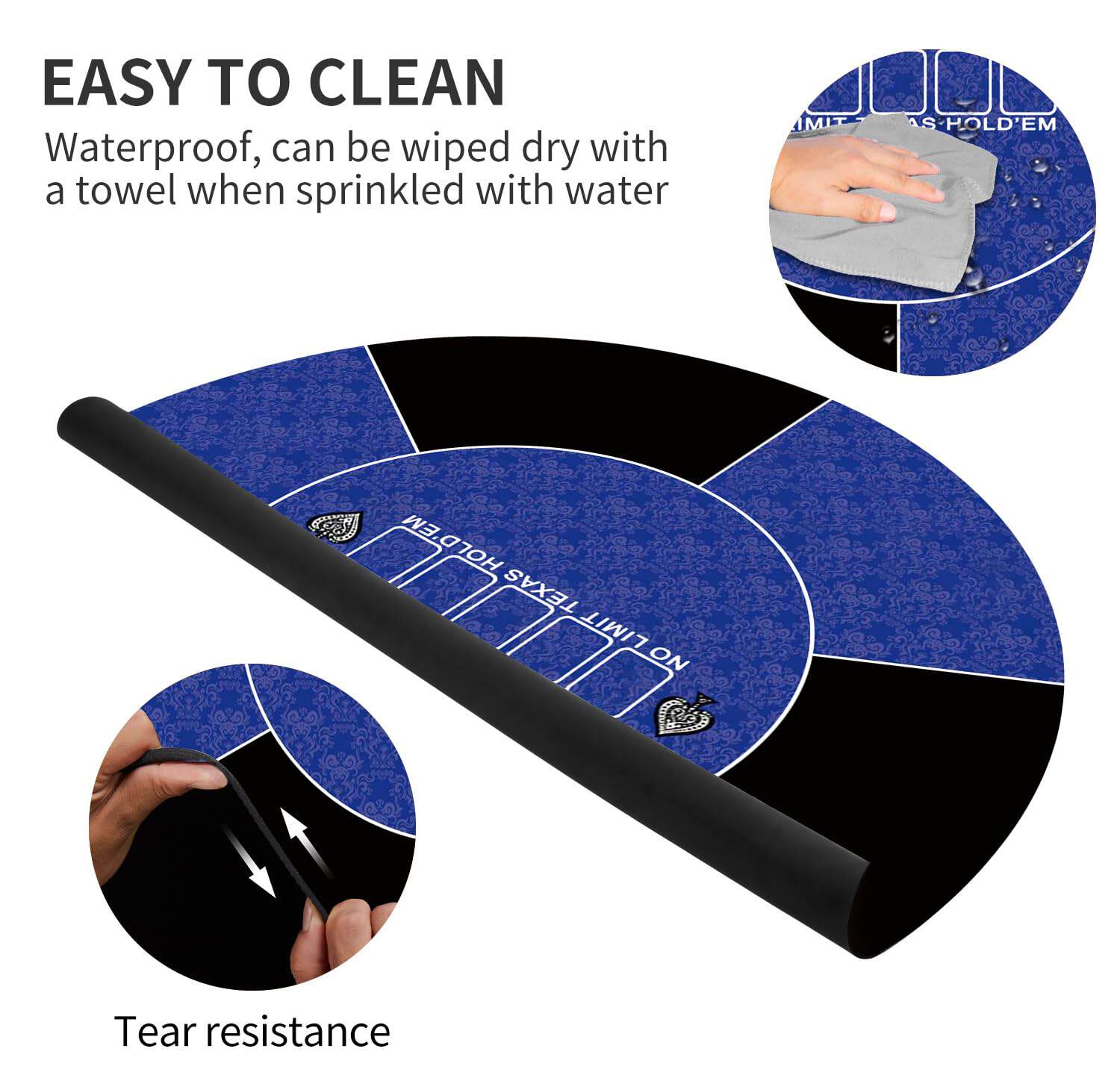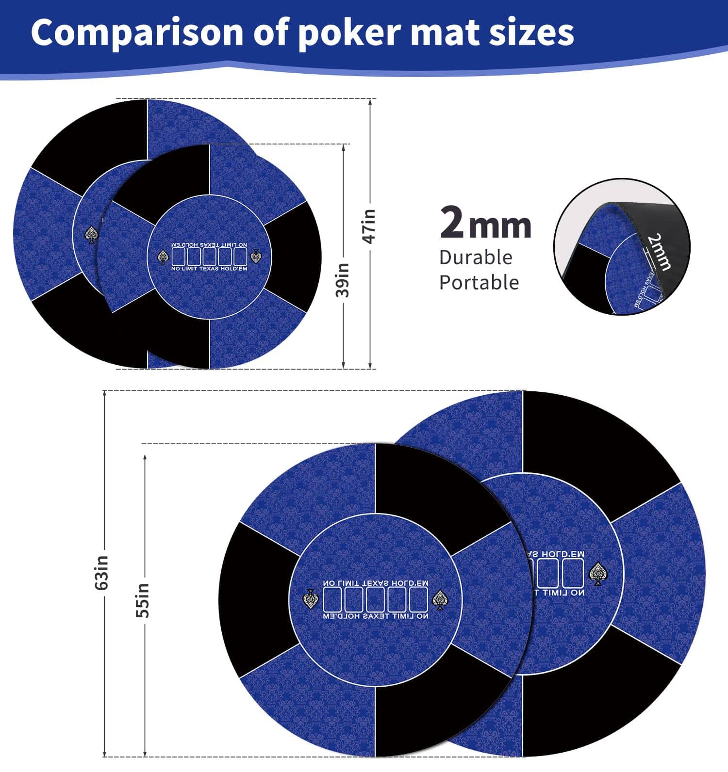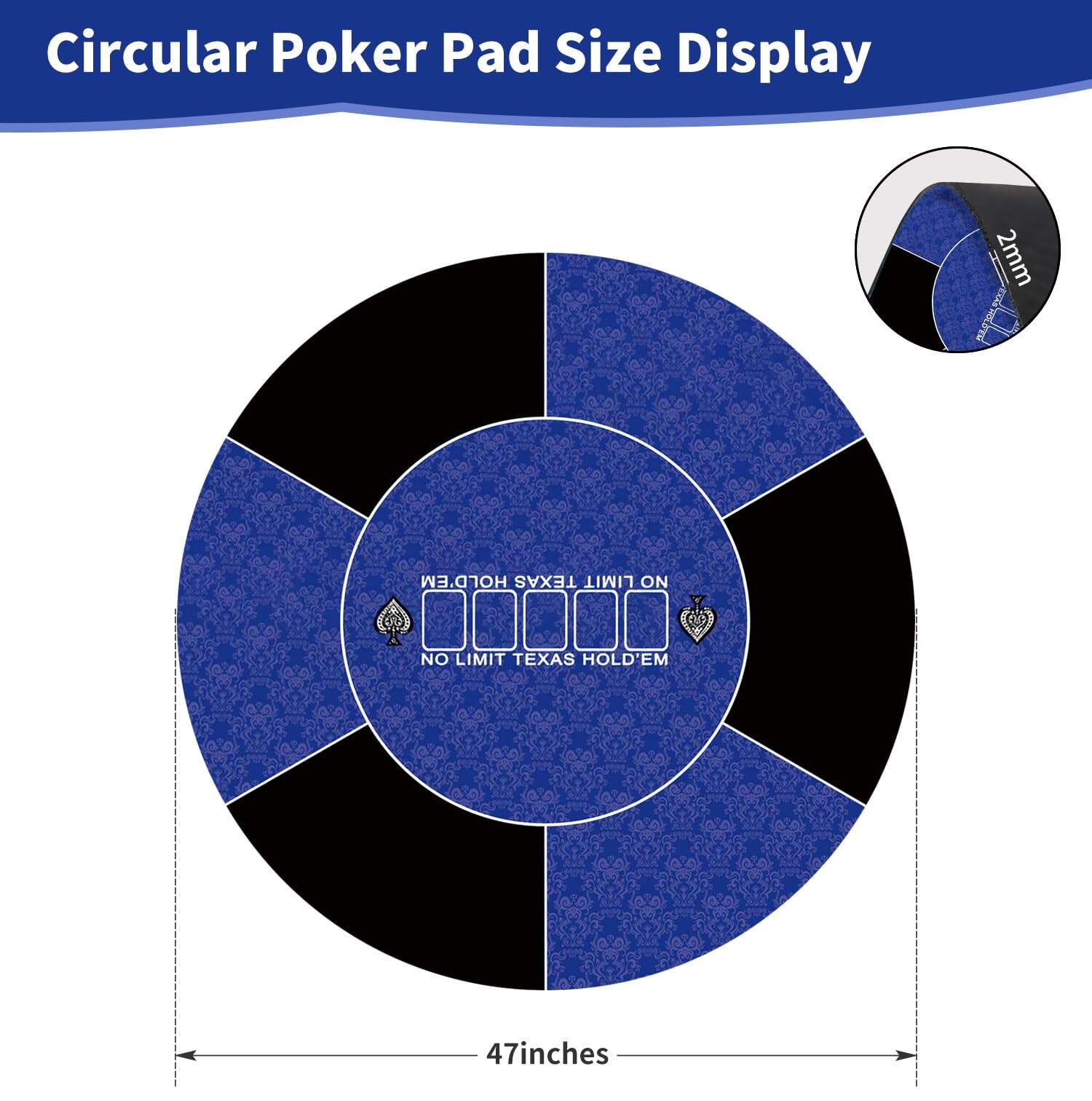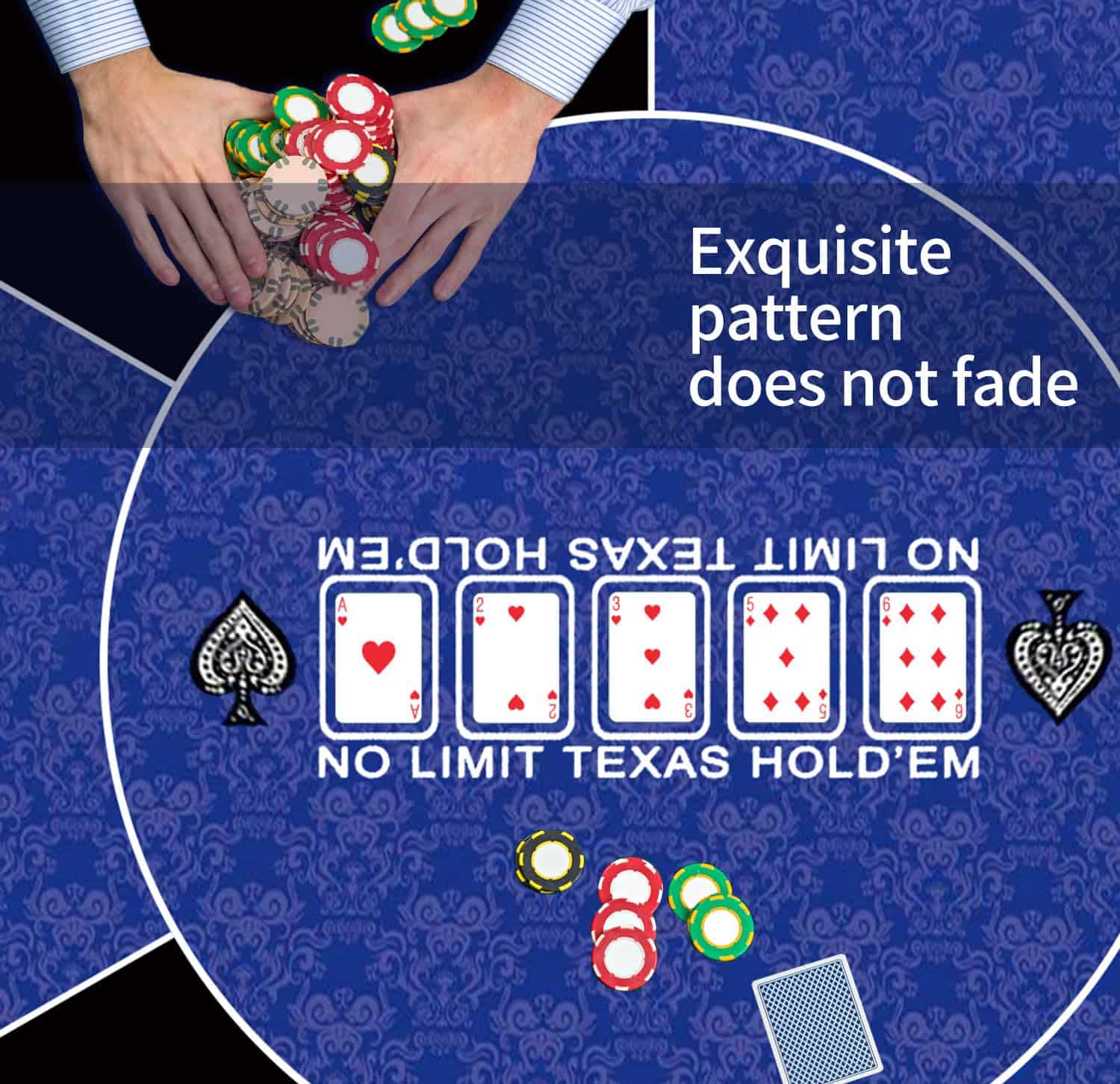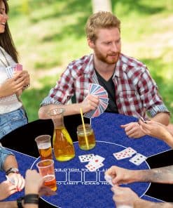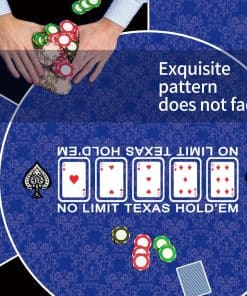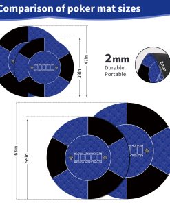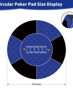 Nuestro tapete de poker redondo proporciona una superficie de juego silenciosa y antideslizante. El tamaño del tapete de juego es de 120 x 120 cm, con múltiples tamaños para elegir. La superficie suave del tapete de juego se mantiene en su lugar durante el juego. El tapete de juego de 2 mm de grosor se puede plegar fácilmente y desplegar de inmediato para jugar. La superficie de las cartas está impresa con elegantes patrones, lo que añade un toque de elegancia a tu juego de cartas. La base de goma antideslizante aga…