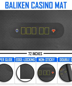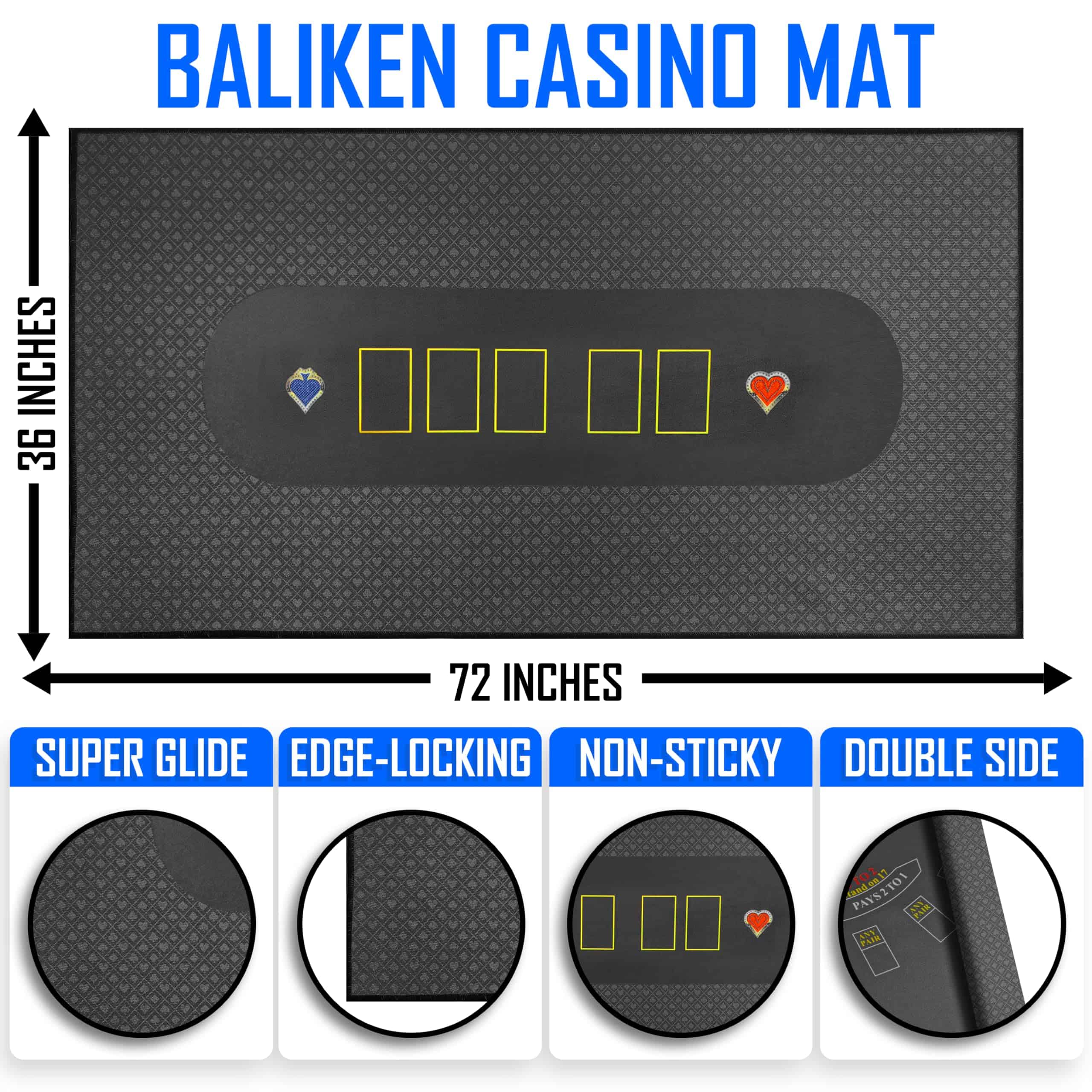 3. DESLIZAMIENTO SUAVE: Se ha utilizado material de tela de la más alta calidad que hace que el fieltro de póker sea más grueso, más suave y más duradero, el tapete de blackjack y el tapete de póker para mesa se mantiene plano sin arrugas para un deslizamiento suave de cartas o fichas.
