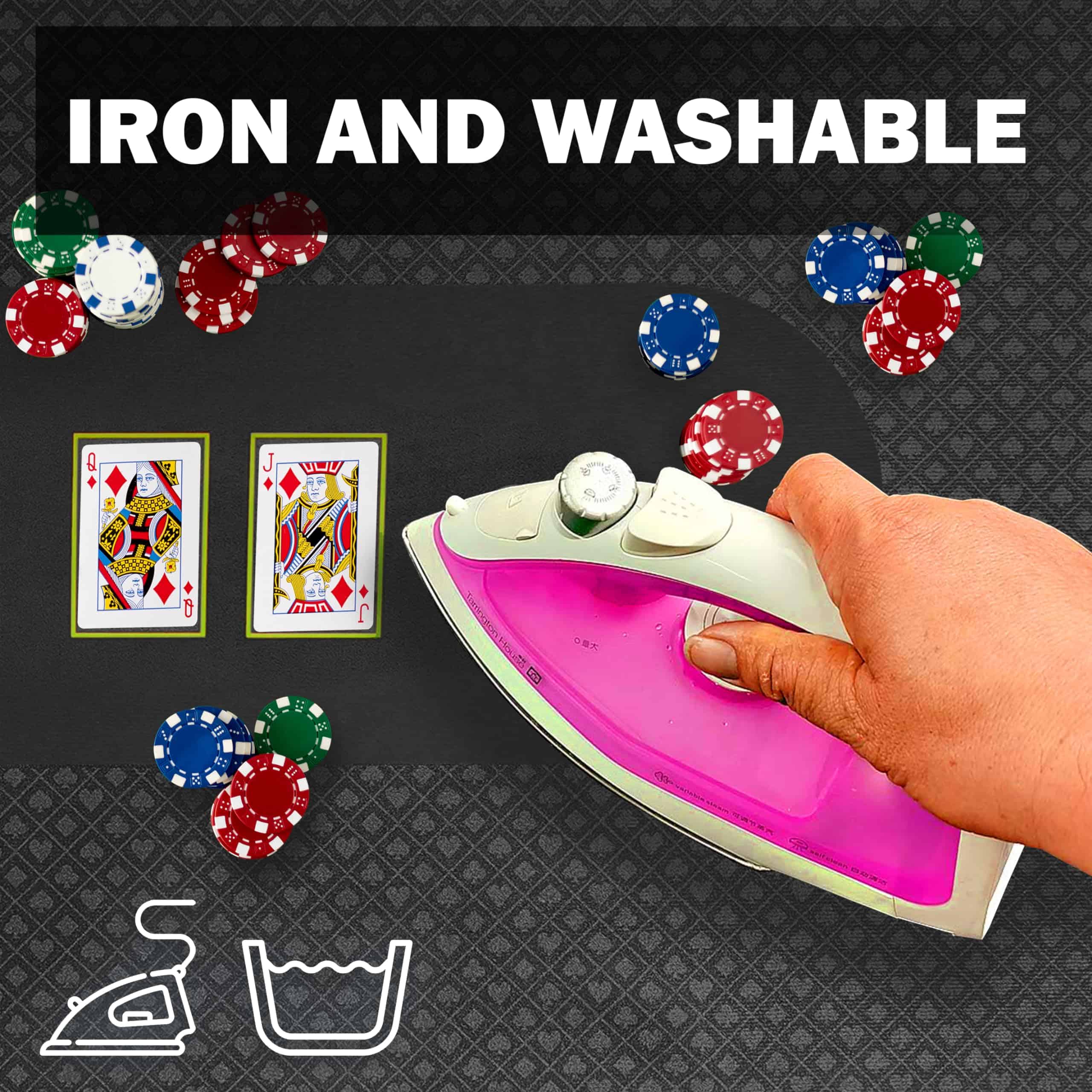 4. DOBLE CARA: Nuestro topper de mesa de póker es de doble cara con un diseño de Texas Hold’em para Póker en un lado y diseño de Blackjack en el otro, para que puedas disfrutar de múltiples juegos de casino con calidad de grado profesional.