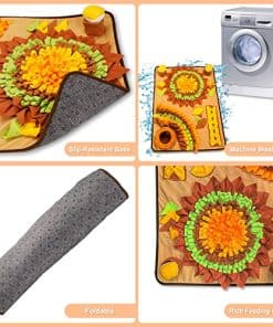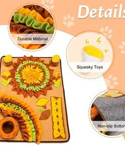¿Por qué necesitan los perros los tapetes de olfateo? Como todos sabemos, olfatear es un método esencial para que los perros exploren el mundo exterior. Olfatear es la naturaleza de los perros, por lo que un maravilloso tapete de olfateo puede estimular el poderoso sentido del olfato de un perro y los instintos naturales de forrajeo. Y nuestro tapete de olfateo está diseñado con formas desordenadas de hierba y puedes esconder un poco de comida o golosinas para avivar la curiosidad del perro. Además, tenemos dos juguetes chirriantes, que pueden atraer la atención del perro y hacer que sea divertido para el perro jugar con las almohadillas de olfateo. Nuestro tapete de olfateo está hecho de chenille + polar fleece, que es duradero e inodoro para asegurarte de que tu perro esté cómodo. Los pétalos están cosidos en el tapete con hilo de algodón grueso, que no es fácil de romper. El tapete de olfateo es muy adecuado para el entrenamiento de rompecabezas de olfateo y ralentizar la velocidad de alimentación de las mascotas, lo que puede hacer que los perros mantengan un buen estado de ánimo y eviten que los muebles se dañen. Características: Tapete de alimentación rico y duradero Juegos interactivos ricos Juguetes chirriantes Liberar energía en exceso Búsqueda de alimentos Material duradero Base de tapete de seguridad antideslizante Lavado a mano o en máquina tapete para olfatear Fácil de guardar y fijar Especificación: Tamaño: 31.4in/80cm 23.6in/60cm Peso: 1.21 lb/550g