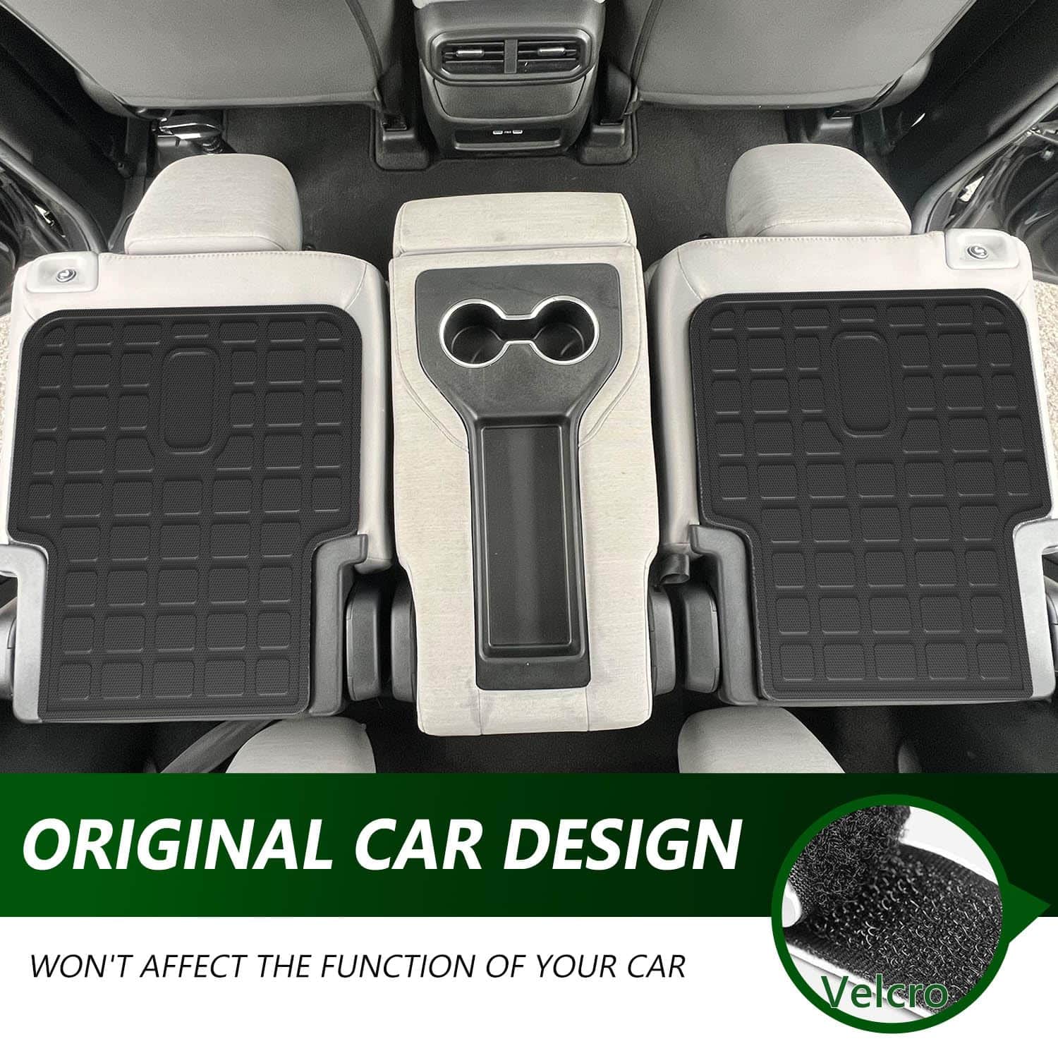 4. Fácil de instalar: Toda la instalación es fácil. Solo necesita colocar el tapete para maletero y los tapetes para suelo en el lugar correcto. Nuestros tapetes de respaldo tienen velcro, que se adherirá a su asiento.