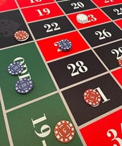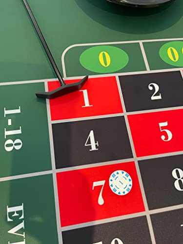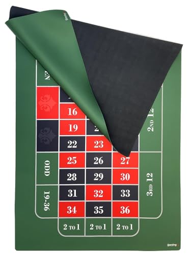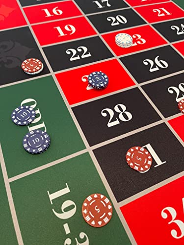 ¡Gira esa ruleta! Deja que comience la emoción con el lujoso tapete de Ruleta de la empresa Gaming Mat Company. Mucho espacio para que múltiples jugadores coloquen sus fichas y viene con un área extendida para que su ruleta y fichas estén apiladas y listas para pagar. Por lo que no hay áreas de la parte superior de la mesa expuestas para ese acabado perfecto. Con una maravillosa superficie suave, observa cómo tus fichas se deslizan mientras apilas tus ganancias. Impresión nítida y hermosa en una parte superior de tela que se puede lavar y es resistente al agua para proteger contra derrames y suciedad y una capa base de goma antideslizante y absorbente de sonido. LA RULETA Y LOS ACCESORIOS NO ESTÁN INCLUIDOS.