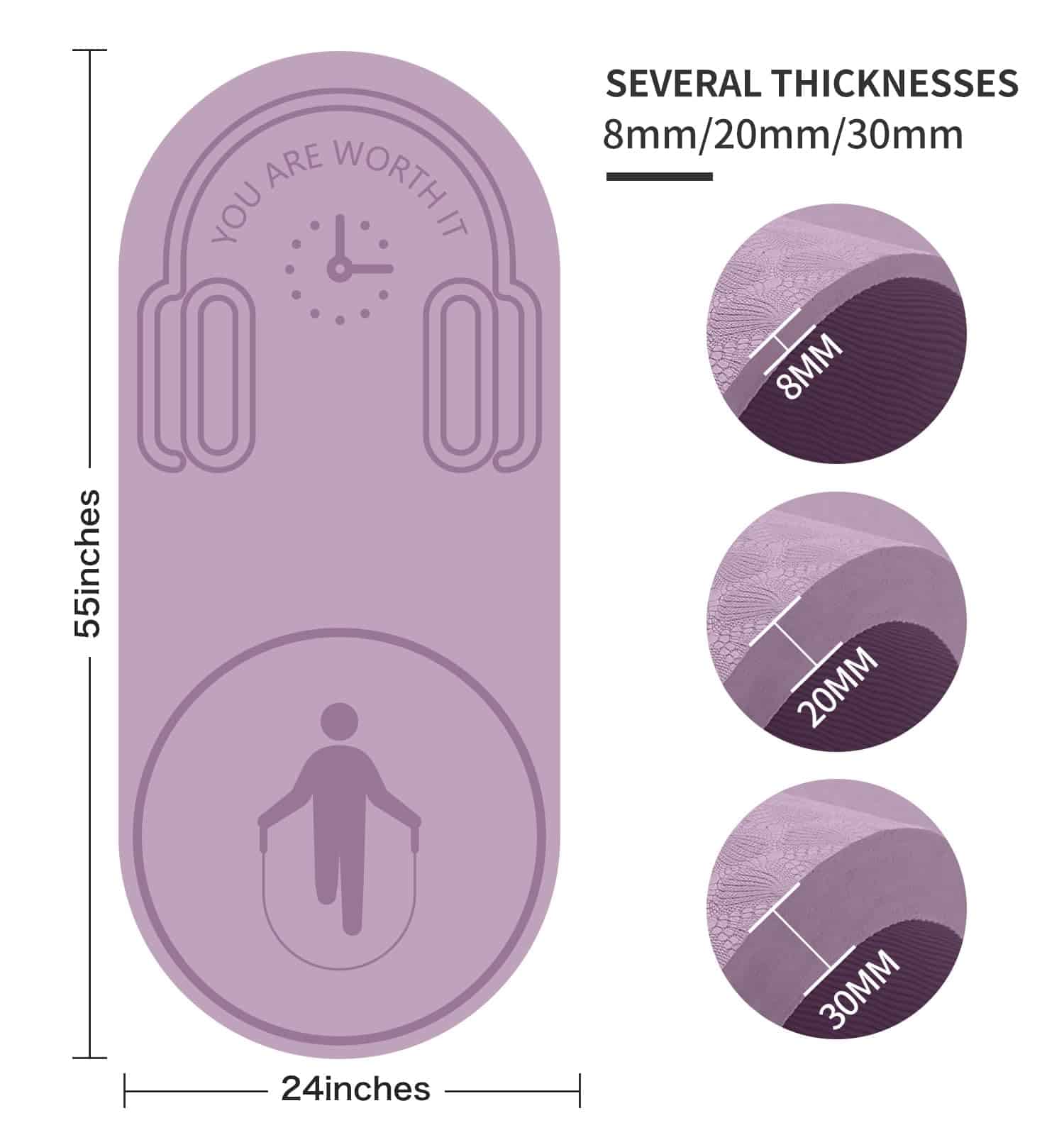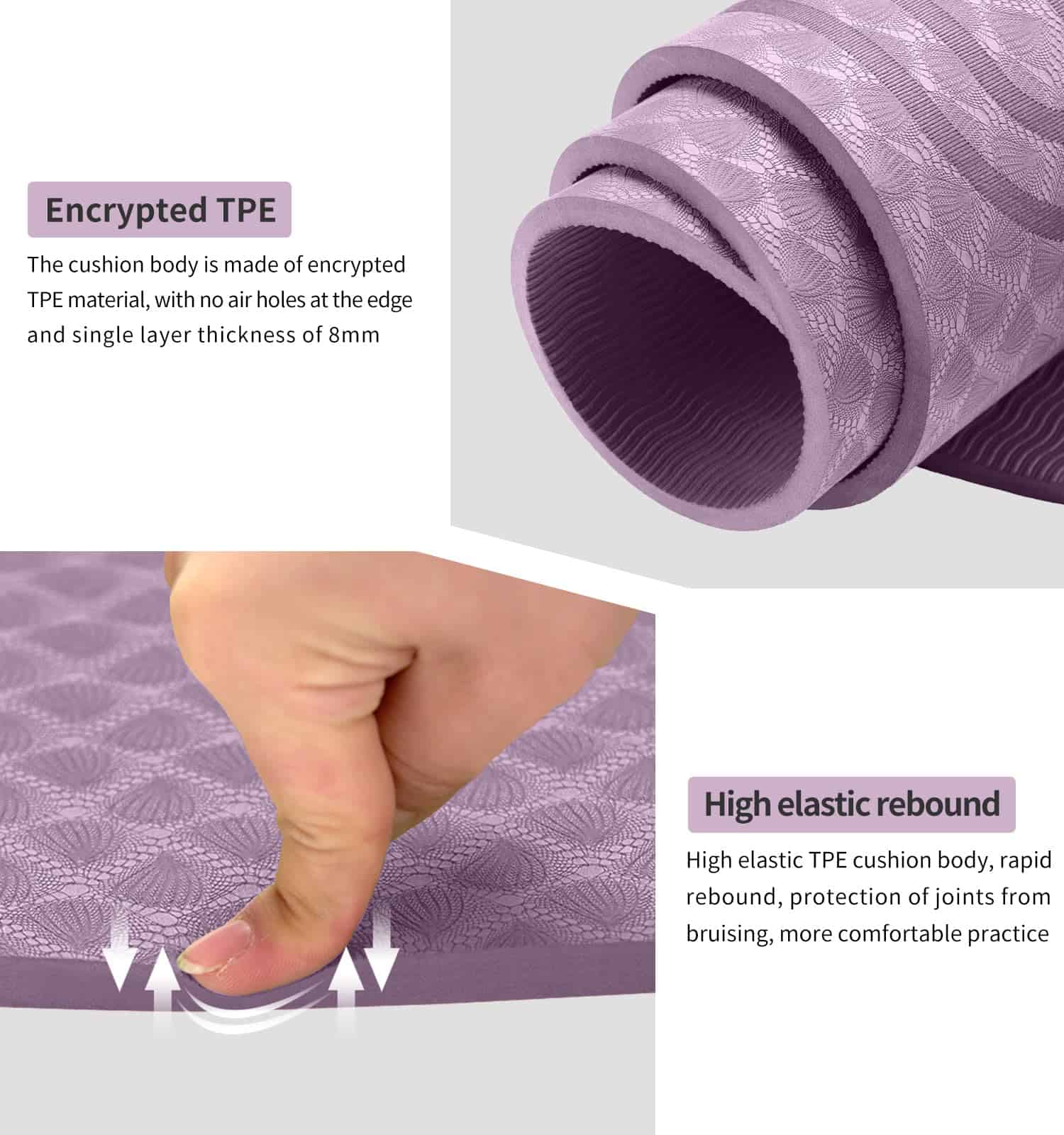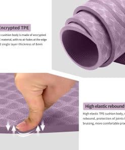 1. GRUESO Y SEGURO: Este tapete de ejercicio de 8mm de grosor aliviaría el estrés en puntos de presión como las articulaciones, caderas, manos y rodillas. Este tapete de yoga duradero y grueso con efecto de amortiguación adicional puede proteger bien sus articulaciones durante su ejercicio de yoga o fitness.