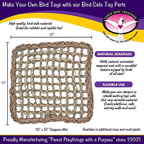 Presentamos los Tapetes de Seagrass Super Bird Creations, la mezcla perfecta de diversión y función para tus mascotas. Ideales para aves de todos los tamaños e incluso pequeños mamíferos y reptiles, estos tapetes de fibras de seagrass naturales y sin tratar ofrecen posibilidades infinitas. Dóblalos, enróllalos, rellénalos o cuélgalos para crear juguetes únicos y estimulantes que satisfagan los instintos naturales de tu mascota. Estos tapetes versátiles no son solo un área de juego, sino una herramienta de enriquecimiento que ayuda a prevenir el aburrimiento y fomentar la actividad física y mental. Elaborados con cuidado y respaldados por profesionales aviares, estos tapetes garantizan seguridad y diversión para tus amigos emplumados, peludos o escamosos. Ya sea para forrajear, escalar o descansar, cada tapete es una aventura única que promueve un estilo de vida saludable y activo para las mascotas. Elige los Tapetes de Seagrass Super Bird Creations para una adición durable, atractiva y segura al entorno de tu mascota.