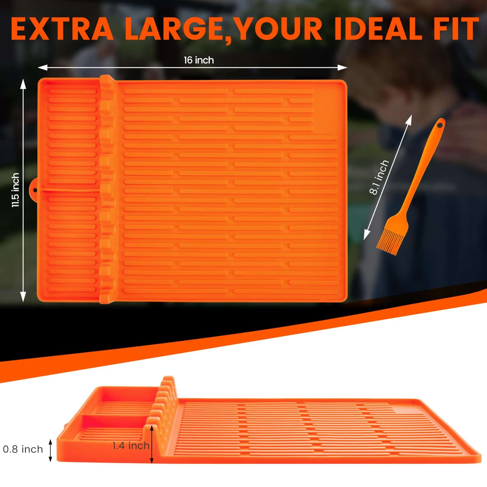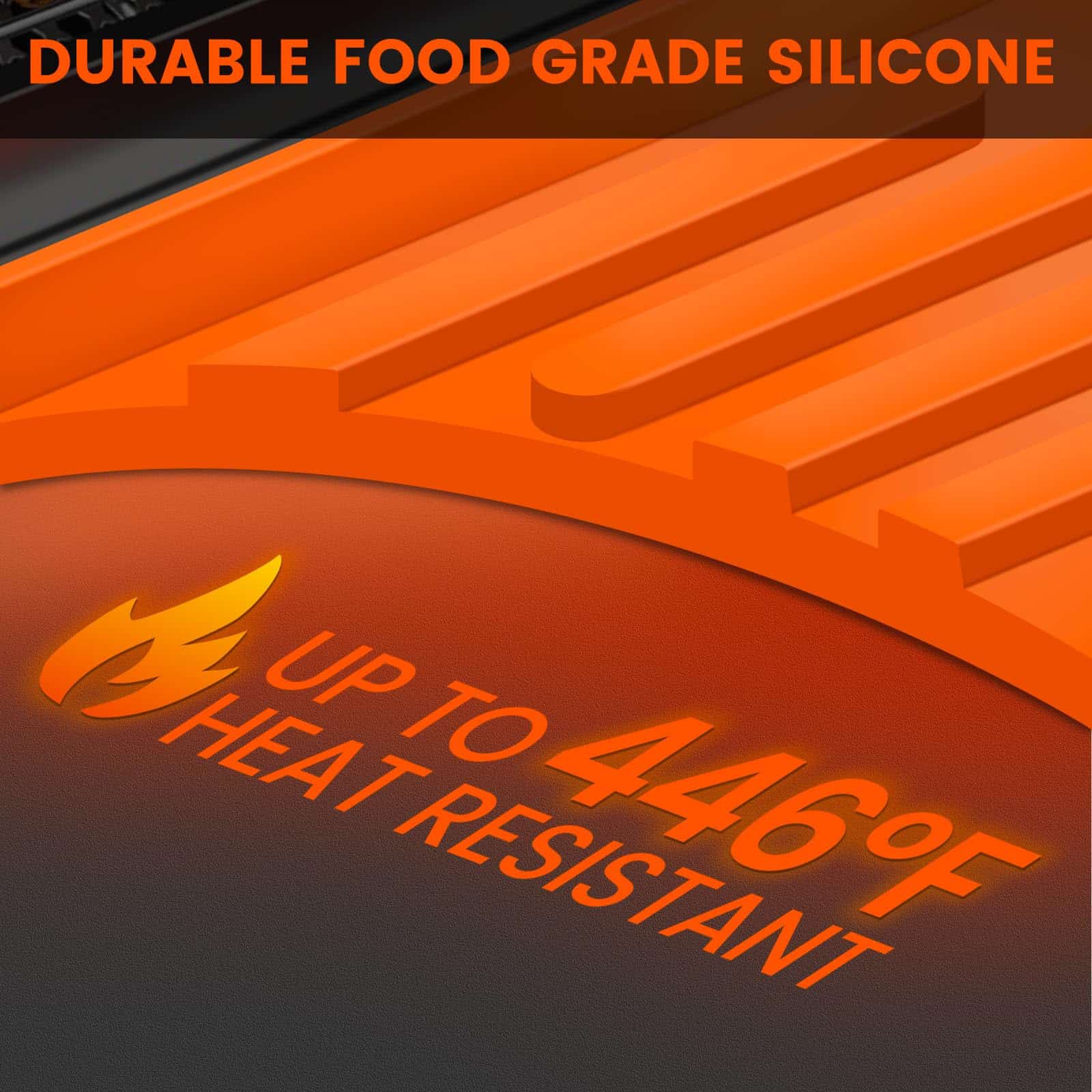 – Resistente al calor: Fabricado con silicona de grado alimenticio, este tapete puede soportar temperaturas de hasta 446 F, lo que lo hace ideal para su uso en la parrilla. Además, su diseño antideslizante garantiza un agarre firme.