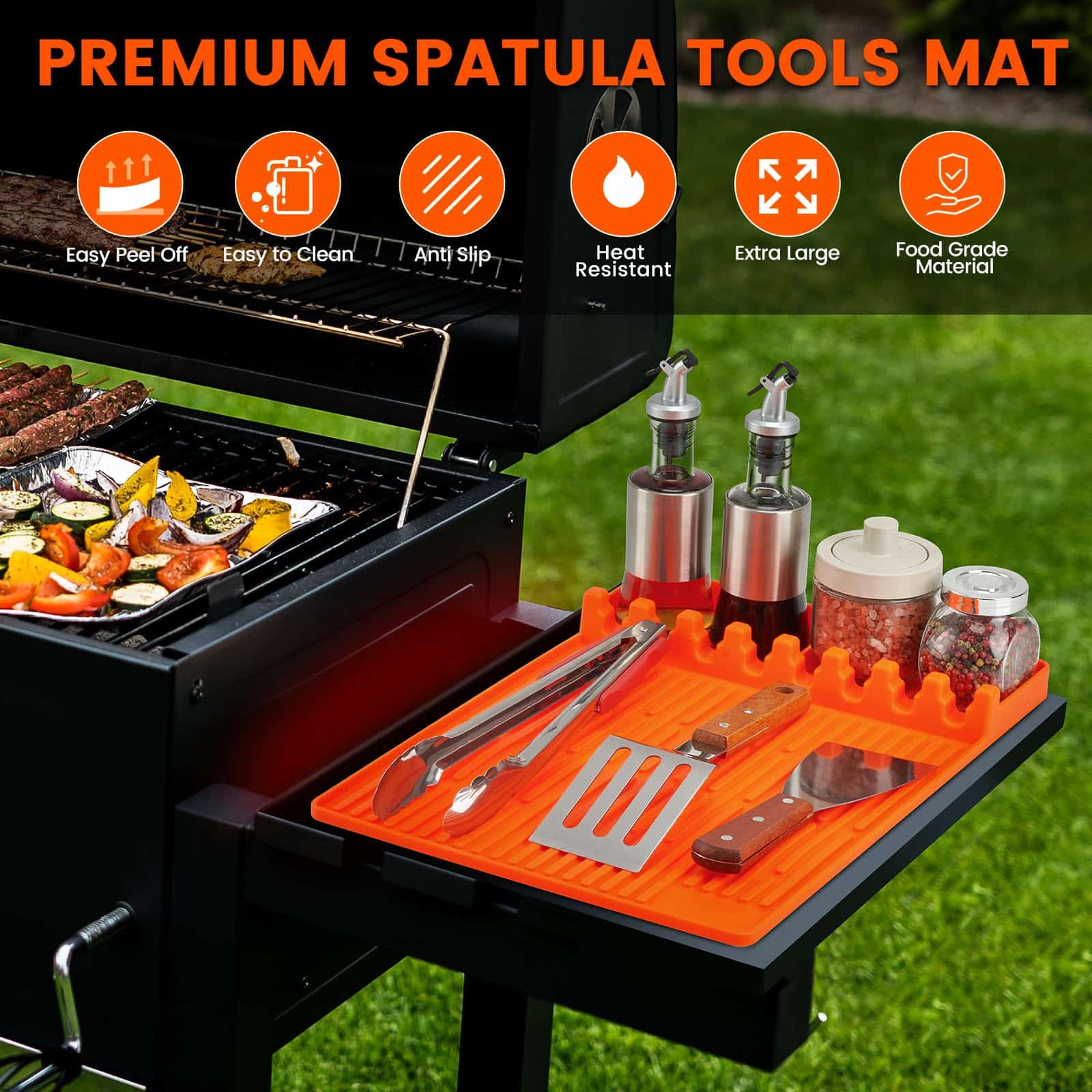– Diseñado para tu parrilla Blackstone, este tapete de silicona es una adición imprescindible para tus barbacoas. Mantén tus herramientas de barbacoa y condimentos a mano de forma segura sin ensuciar tu mesa lateral de grasa y aceite.