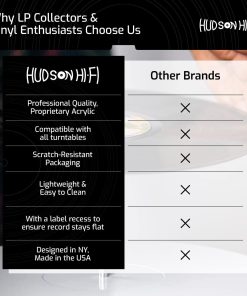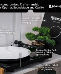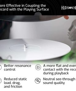 Como coleccionista dedicado, sabes exactamente lo que se necesita para cuidar tu colección preciada. Aquí en Hudson Hi-Fi, estamos comprometidos a equipar a los audiófilos con la configuración perfecta para sus necesidades de cuidado, mantenimiento y almacenamiento de LP. Los audiófilos y entusiastas apasionados pueden tener diferentes colecciones de LPs, opciones de género y preferencias de discos de vinilo pero todos tienen una cosa en común: La necesidad de una cartucho de alineación de tocadiscos de acrílico confiable, tapete de disco, o tapete deslizable que haga justicia a sus discos de vinilo. Mientras la mayoría, si no todas las clases de tapetes de platillos de tocadiscos proporcionan una serie de beneficios como protección de disco, estabilización de su vinilo durante la reproducción, reducción de fricción, y mejora general de la calidad de sonido con una experiencia de escucha de mayor definición, elegir el tapete adecuado puede ser complicado. Actualiza tu tocadiscos actual y elige el Tapete de Tocadiscos de Acrílico de Hudson HiFi para una mejora significativa en la calidad de sonido del disco con una mejora en dinámica. Fabricado a partir de material acrílico CNC de precisión, proporcionando a su platillo de 12 pulgadas una superficie plana, resistente a los arañazos y al deslizamiento, nuestro tapete antiestático de acrílico absorbe eficazmente la energía micro-vibracional de una manera única, permitiendo que la aguja haga un mejor contacto con las ranuras en un disco. Diseñado en Nueva York cumpliendo con los estándares de la RIAA y considerando el más estricto calibre audiófilo, nuestro tapete de acrílico está equipado con un rebaje de etiqueta para garantizar que los discos permanezcan planos para una reproducción óptima. A diferencia de otros tapetes de deslizamiento acrílicos blancos, tapetes de DJ technics, tapetes de plato giratorio electrohome, tapetes de deslizamiento reversibles switchmat, y tapetes de acrílico de disco deslizante, el nuestro tiene una superficie transparente más clara para hacer que tu experiencia auditiva sea aún más estéticamente satisfactoria.