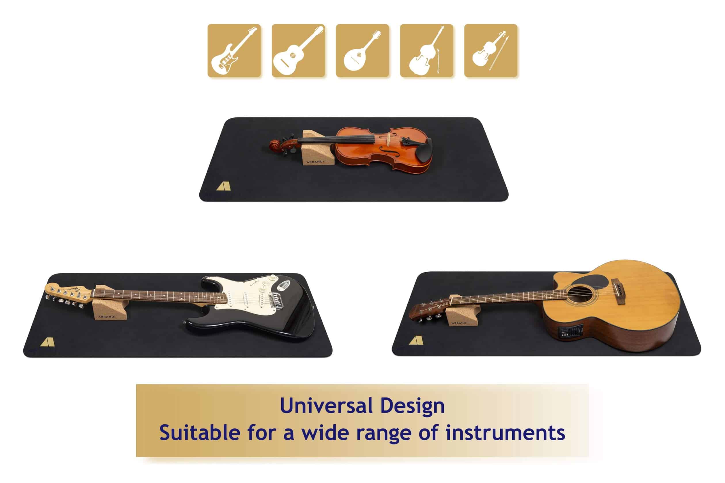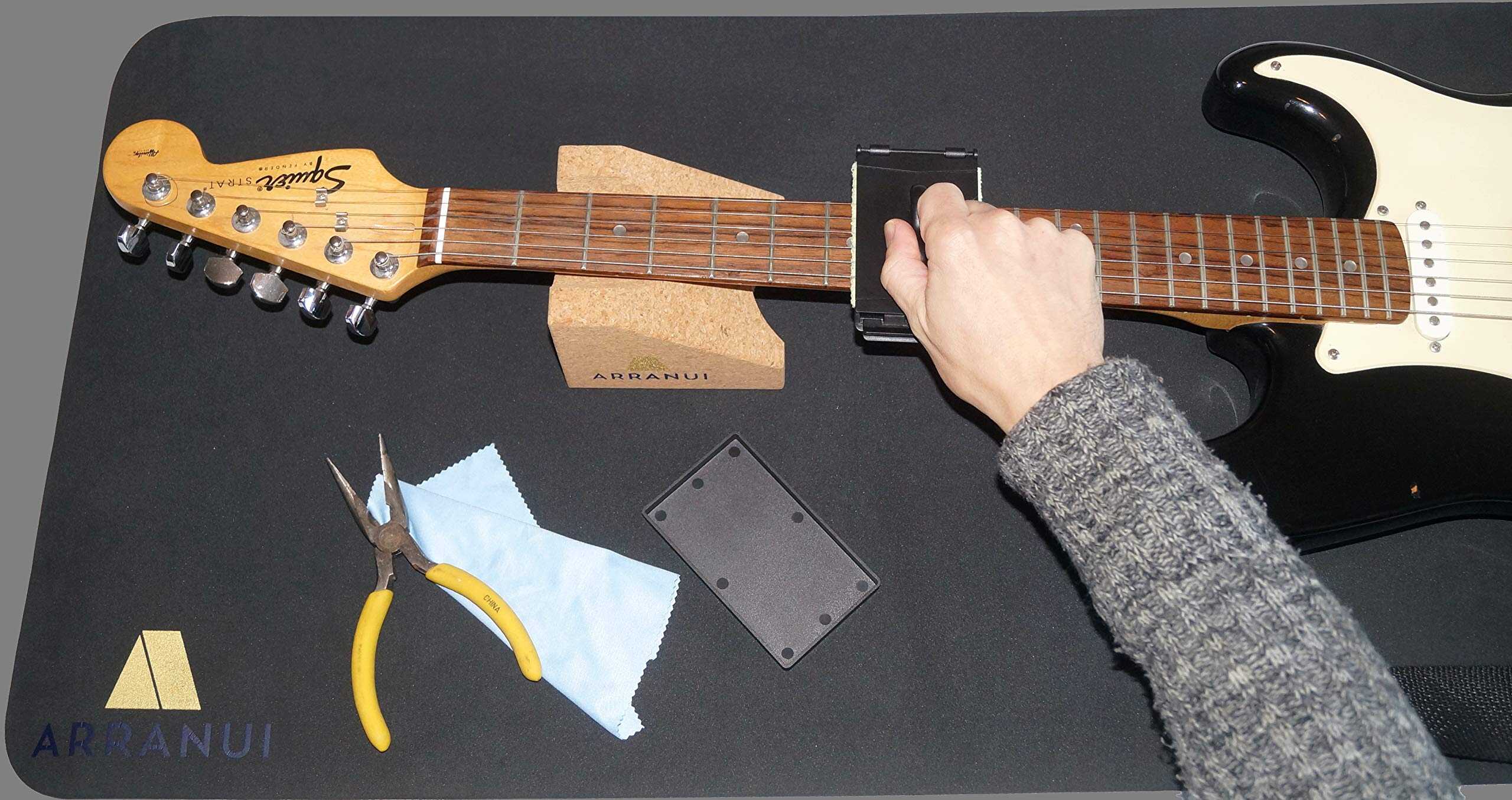 1. El tapete de trabajo para guitarra ARRANUI y el soporte para el cuello ofrecen un soporte suave y estable a sus instrumentos de cuerda durante la configuración, limpieza y mantenimiento.