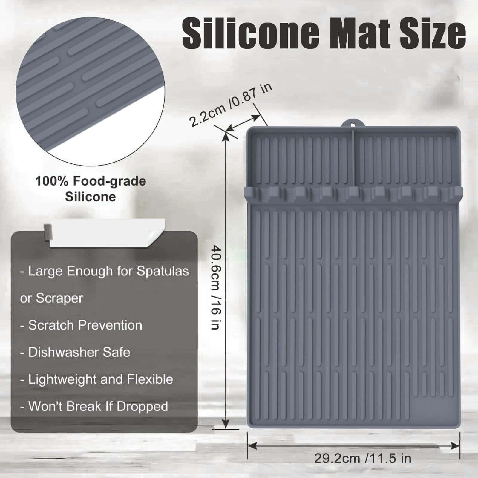 1. Tapete de Espátula de Silicona que Combina con la Parrilla Blackstone: Tamaño grande de 16×11.5″ de tapete de espátula de silicona, diseñado para la repisa lateral de las parrillas Blackstone. Puedes poner espátula de barbacoa, pincel, cuchillo, espátula, varios frascos de condimentos. Puedes tenerlos al alcance de tu mano. No más preocupaciones por manchar la encimera.