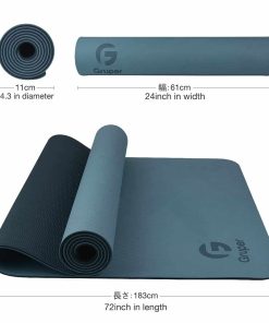 El tapete de Yoga antideslizante Gruper está hecho con material ecológico premium. Es más seguro y más suave que los tapetes tradicionales de PVC y EVA. El diseño antideslizante mejorado y la estructura de doble capa hacen que sea resistente al desgarro y a la deformación. Disponible en dos tamaños diferentes: Tamaño Estándar: 183cm x 61cm; Grosor: 6mm; Peso: 1.18kg. Tamaño Grueso: 183cm x 61cm; Grosor: 8mm; Peso: 1.41kg. Incluye correa de transporte y bolsa de almacenamiento gratuita.