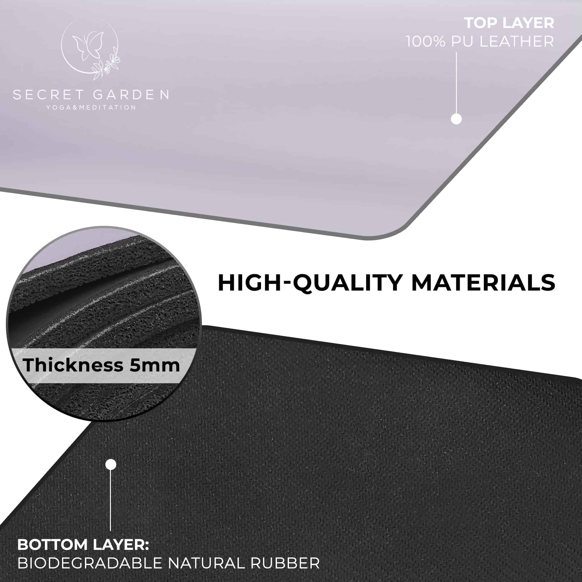 Ya seas un principiante o un profesional del yoga, necesitas el tapete de ejercicio adecuado para hacer tu entrenamiento más efectivo y cómodo. Los tapetes de entrenamiento Secret Garden para gym en casa son gruesos, suaves y antideslizantes, por lo que puedes disfrutar de un entrenamiento relajante en casa o en el gimnasio. El tapete de entrenamiento Secret Garden tiene una construcción de doble capa compuesta por cuero de poliuretano libre de PVC y una capa inferior de goma natural ecológica, lo que hace que el tapete sea duradero y resistente a innumerables sesiones de yoga. Comparado con tapetes similares, nuestro tapete de yoga antideslizante tiene un grosor de 5 mm, especialmente diseñado para ofrecer más amortiguación y soporte para tus manos, piernas y cuerpo, promoviendo una alineación corporal correcta y posiciones de yoga para un entrenamiento efectivo. Estos tapetes de ejercicio gruesos son perfectos para tus sesiones de yoga, estiramientos matutinos, Pilates, ejercicio, pero también meditación y rituales. Son ligeros, plegables y muy fáciles de transportar, para que puedas disfrutar de tu rutina diaria en casa, oficina, viaje, vacaciones o al aire libre. Nuestros tapetes de yoga para mujeres y hombres están diseñados pensando en tu comodidad y felicidad, ya que son muy fáciles de limpiar y mantener. El material de secado rápido y la superficie lisa te permiten eliminar cualquier mancha o residuo con una toalla limpia o una toallita desechable. ¡Dales a tus seres queridos nuestro tapete de gimnasio para que puedan romper las paredes invisibles de la inconsciencia y relajarse! ¡Regálales nuestra almohadilla en ocasiones como el Día de San Valentín, el Día de la Madre, el Día de Acción de Gracias, el Día de Navidad, cumpleaños, aniversarios, y solo porque sí! ¡Te garantizamos que el cojín de meditación zafu de alta calidad seguramente te complacerá! ¡Si por alguna razón no estás 100% satisfecho con el Secret Garden, por favor contáctanos!