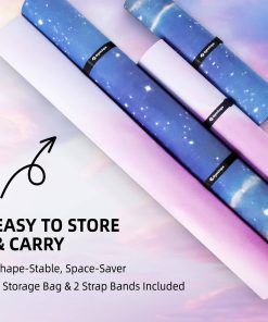 Añade estilo a tus sesiones de yoga con este tapete de gamuza de 6’x4′ con un grosor de 1/4 de pulgada. Ideal para ejercicios de pilates en casa o en el gimnasio. Incluye correa para mayor comodidad.