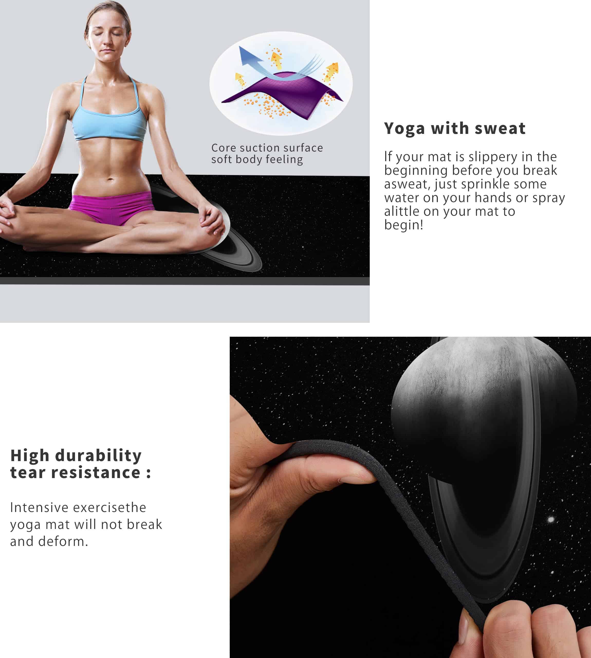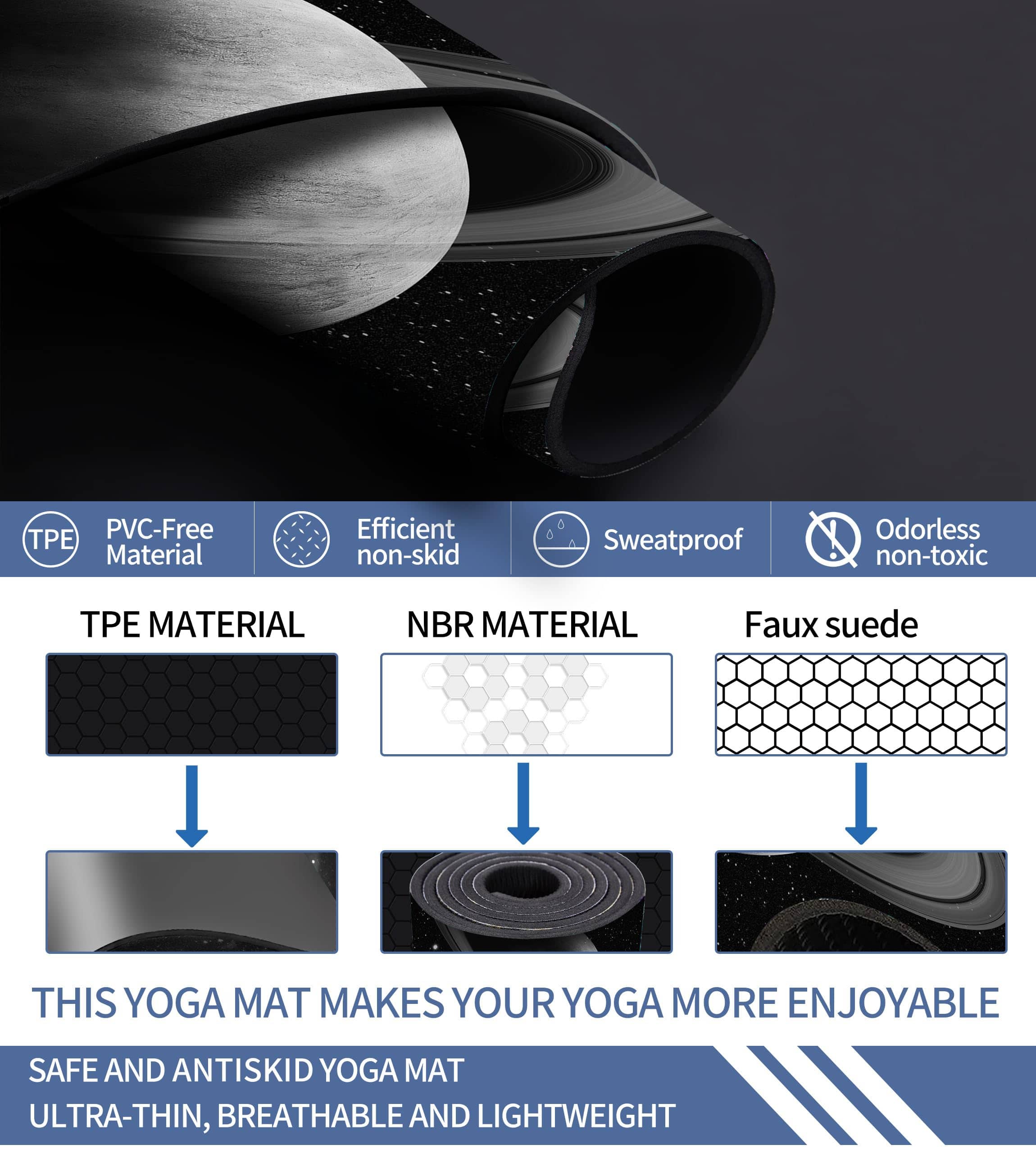 1. MATERIAL ECOLÓGICO TPE – El tapete de yoga de Cifupy está hecho de material TPE, que no contiene PVC ni olores irritantes, es suave, respetuoso con la piel y ligero. Reciclable y evita la contaminación ambiental. 2. ESPESOR ÓPTIMO DE TAPETE DE YOGA – Tamaño: 72 pulgadas x 24 pulgadas x 1/4 pulgada. Este tapete de fitness de 6 mm ofrece una excelente amortiguación y resistencia, adecuado para yoguis de todos los niveles. Las líneas de alineación profesional te ayudan a concentrarte y ajustar tus posiciones. ¡El tapete de yoga grande puede satisfacer todas las necesidades de yoga, pilates y ejercicios generales en el suelo para mujeres y hombres! 3. DISEÑO DOBLE ANTI-DESLIZANTE – El diseño de textura anti-deslizante en ambos lados y la textura en la parte trasera ofrecen una buena amortiguación y un agarre óptimo. El tapete de yoga antideslizante demuestra una excelente resistencia al deslizamiento en todo tipo de suelos, por ejemplo, suelo de madera, suelo de cemento, suelo de baldosas. ¡Puedes hacer cualquier postura de forma segura en el tapete de yoga antideslizante sin preocuparte por lesiones! 4. CORREA DE TRANSPORTE GRATIS Y BOLSA DE ALMACENAMIENTO – No necesitas comprar una correa de transporte de yoga y una bolsa. Fácil de llevar tu tapete de yoga a cualquier lugar. Puedes llevarlo a un estudio de yoga, gimnasio o a cualquier lugar sin ninguna carga. 5. INSTRUCCIONES DE CUIDADO – 1. Limpie con un paño húmedo (agua fría) o detergente suave, seque plano. 2. No use lavadora ni secadora ni exponga al sol durante períodos prolongados.