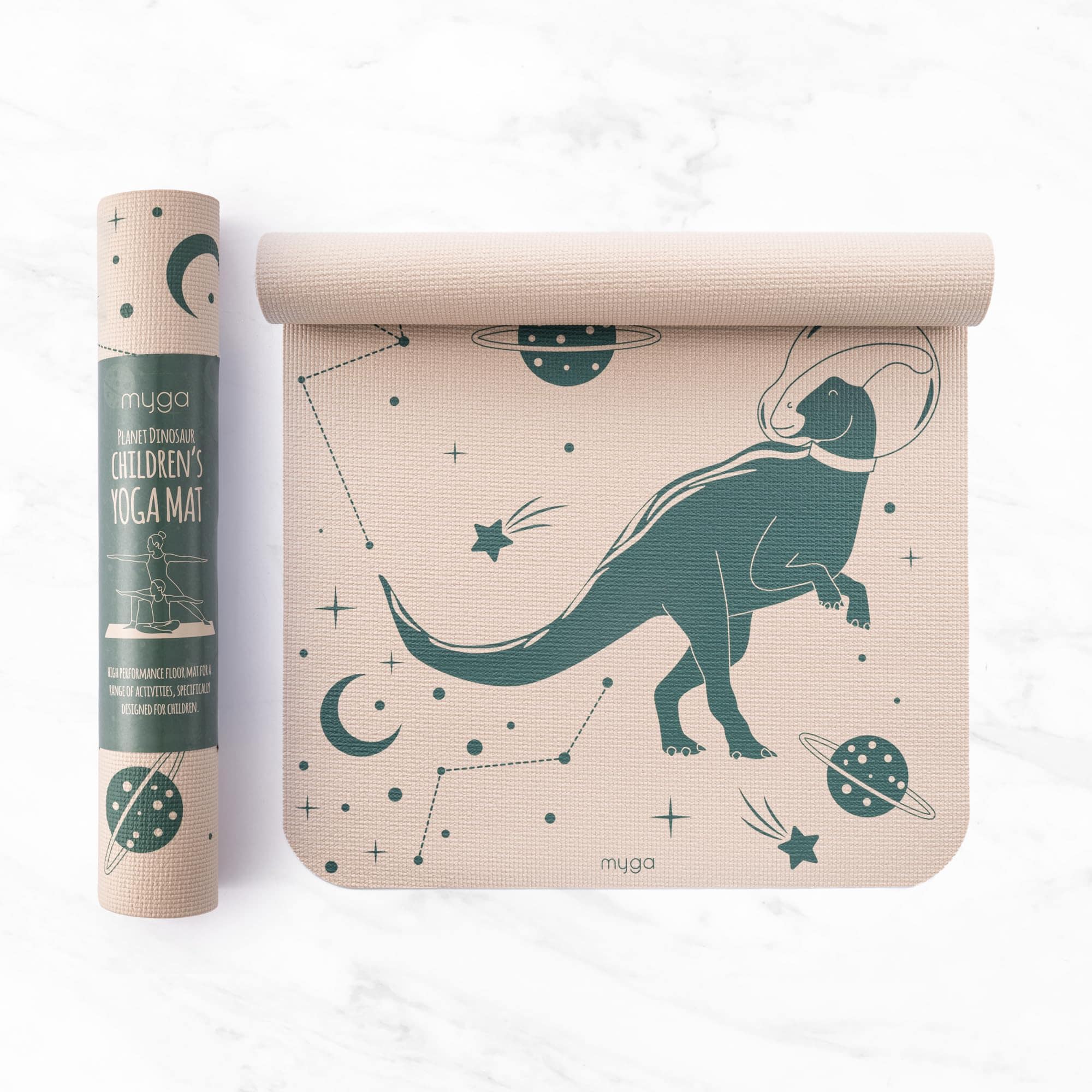 Tapetes de Yoga para Niños con Estampado de Seda Transforma la práctica de yoga de tu hijo en una emocionante aventura con la gama de tapetes de yoga con estampado de seda de Myga, diseñados especialmente para niños. La seguridad es primordial, y la superficie texturizada y antideslizante asegura que tu hijo pueda moverse con confianza sin riesgo de resbalar. Con un grosor de 0.12″, el tapete proporciona la cantidad justa de acolchado para proteger las articulaciones sensibles como las rodillas y los tobillos al tiempo que mantiene una base firme para el equilibrio y la estabilidad. Las dimensiones del tapete – 21.7″ de ancho y 59″ de largo – ofrecen un amplio espacio para estirar, realizar posturas de yoga o actividades lúdicas, lo que lo convierte en el tamaño perfecto para niños. Diseñado en el Reino Unido con un único estampado de seda en un lado, es lo suficientemente resistente para soportar el uso diario, asegurando que permanezca vibrante y confiable. Ya sea que estén practicando yoga, estirando o simplemente jugando, los tapetes de yoga para niños de Myga combinan seguridad y diversión, alentando a los niños a explorar el movimiento con el espíritu de la aventura. Tapete de Yoga Frenesí Este tapete único presenta un diseño juguetón y patrones retro vibrantes, haciendo que cada sesión de yoga se sienta como un viaje a través del tiempo. Tapete de Yoga Unicornio Este tapete único presenta un unicornio encantador y un atrapa sueños de ensueño, creando un telón de fondo mágico para cada sesión de yoga. Tapete de Yoga de Posturas Este tapete único presenta una vibrante variedad de posturas de yoga, proporcionando un telón de fondo lúdico y educativo que puede inspirar la práctica de tu hijo. Tapete de Yoga de Dinosaurios Este tapete único trae el mundo de los dinosaurios a la vida con su diseño juguetón y telón de fondo cósmico, para un viaje a través del espacio y el tiempo.